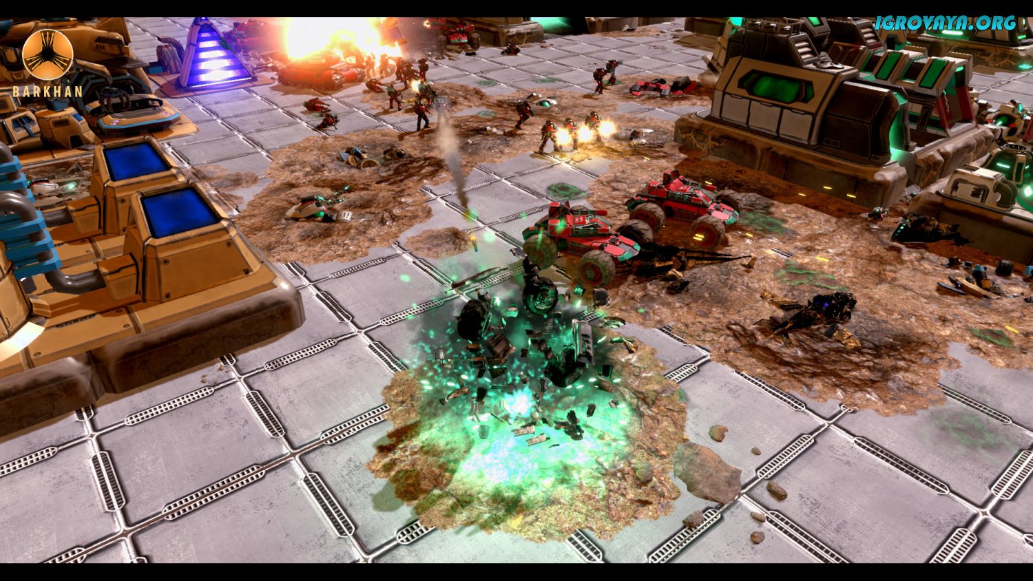 Постройте базу и оснастите ее всем необходимым. Потребуются не только здания для найма армии, но и разнообразные датчики, которые оповестят о приближении противника, а также электростанции для снабжения лагеря энергией. Управляйте отдельными членами команды или сразу целым войском и продвигайтесь вглубь карты. У каждого класса воинов есть свои уникальные способности, которые стоит учитывать.