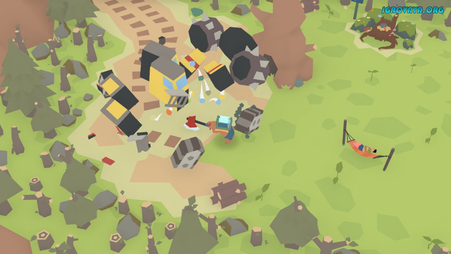Геймплей заключается в освобождении предложенной локации от трех составляющих: конструкций, отходы и людей. Для этого подойдите к предмету и ударьте его топором, а после не забудьте собрать с собой выпавший металлолом. Он потребуется для улучшения оружия, чтобы эффективнее разрушать объекты и открыть доступ к поломке более внушительных сооружений. Не переживайте, ни один человек на вашем пути не пострадает, но станет более осознанным и сменит наряд для наглядности.