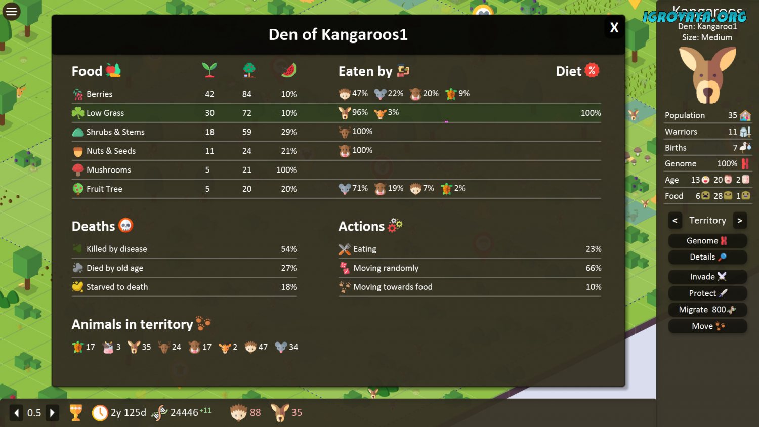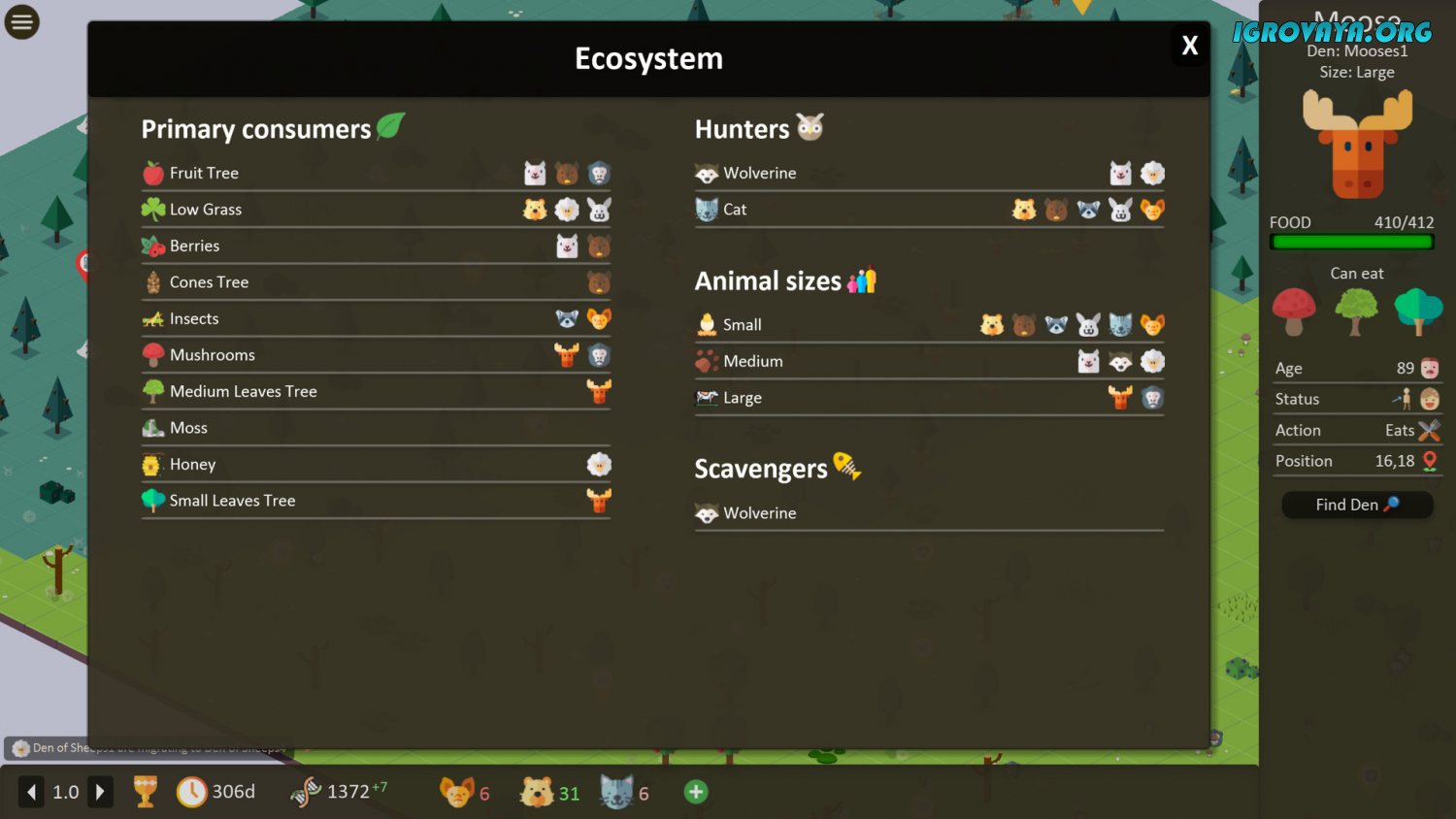 Испытайте невероятный опыт от прохождения, ведь в стилизованном проекте многое зависит от вашего выбора и вы лично пишите историю. С нашего сайта Territory: Animals Genetic Strategy скачать торрент вы можете уже сейчас и приступить к игровому процессу. Исследуйте необъятный мир и находите наиболее удачное, безопасную область с большим количеством еды. Для этого придется передвигаться и менять место обитания в попытке найти небольшой участок со всеми ресурсами. Встречайте на своем пути хищников и будьте готовы отбиваться от противников, защищая вид от вымирания.