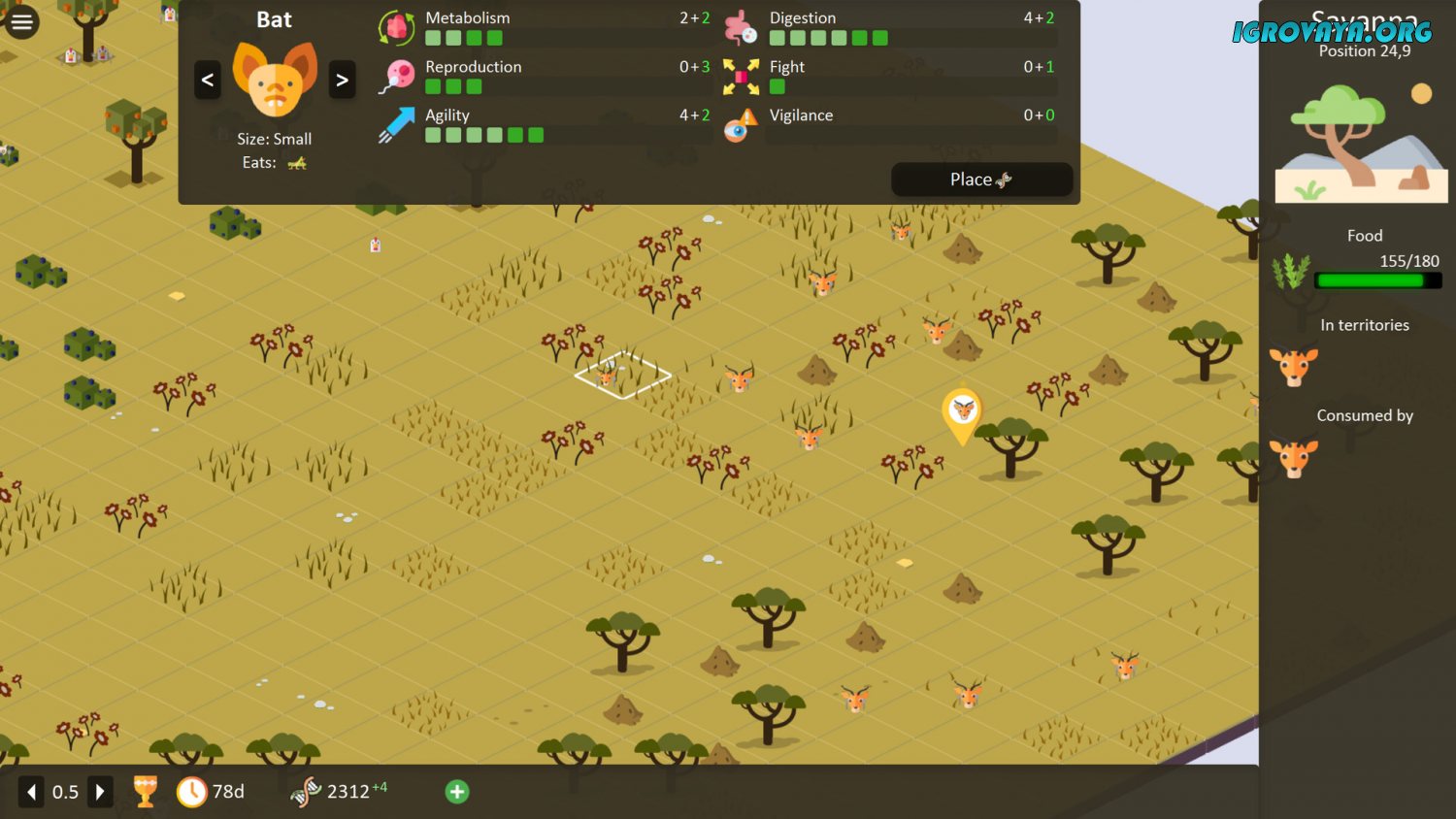 Экспериментируйте с геномом, добавляя и убирая характеристики из предложенного списка. Создавайте экзотические и необычные комбинации на основе уже существующих млекопитающих, а после наблюдайте за тем, как существа выживут в мире. Некоторые из них не смогут ужиться с другими видами, другие же окажутся агрессивно настроенными. Учитывайте это при их размещении, иначе рискуете лишиться всех обитателей и начать игру заново.