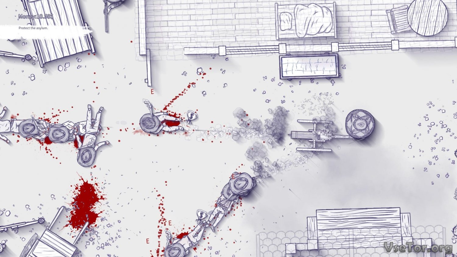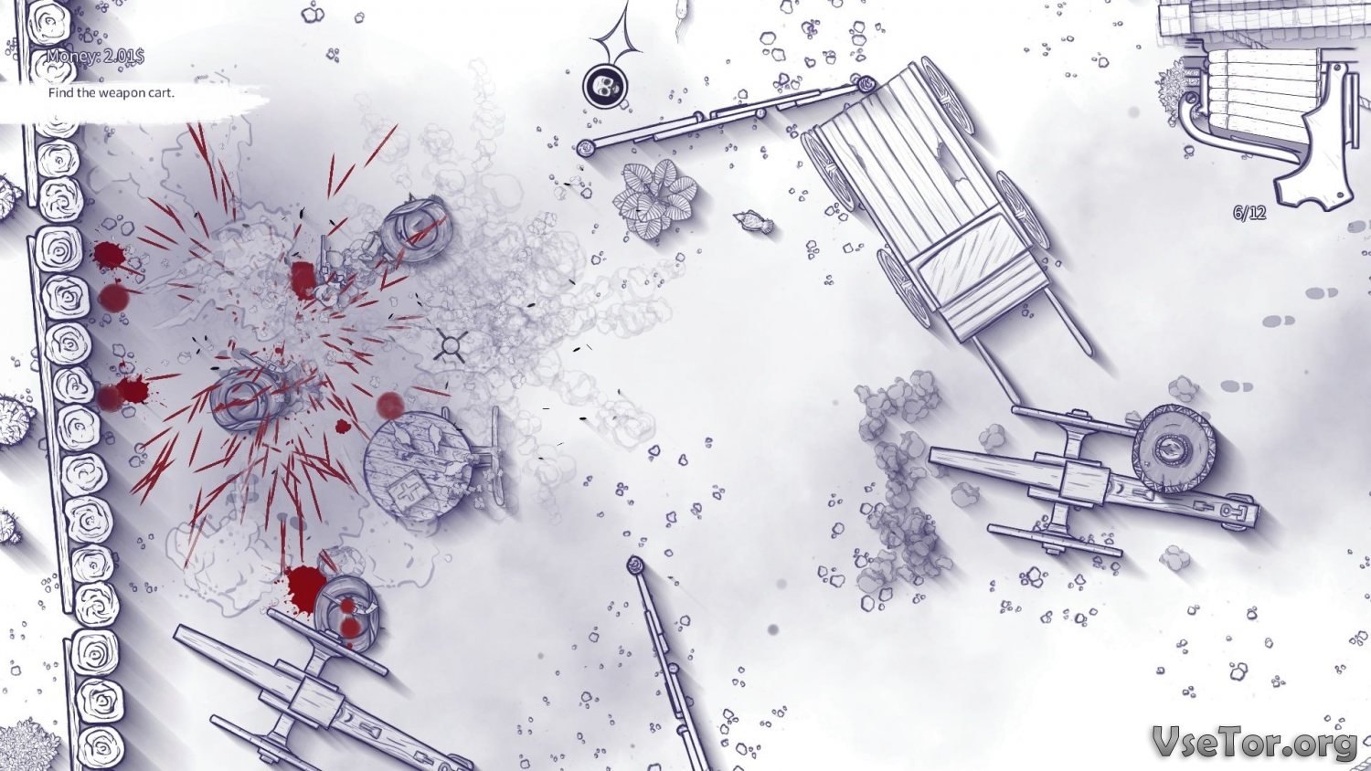 Помимо всего прочего вас в 12 Is Better Than 6 удивит уникальная по своей сути боевая механика. У вас есть главный герой, которым вы можете управлять, используя стандартные кнопки передвижения, и есть прицел, гуляющий по экрану отдельно от героя и управляющийся мышкой. Ваша задача – замечать все на экране, вовремя реагировать и стрелять, направляя прицел на противника. При этом, к примеру, стреляя из винтовок с прицелом, можно наводить прицел на цели далеко за пределом видимого на экране пространства.