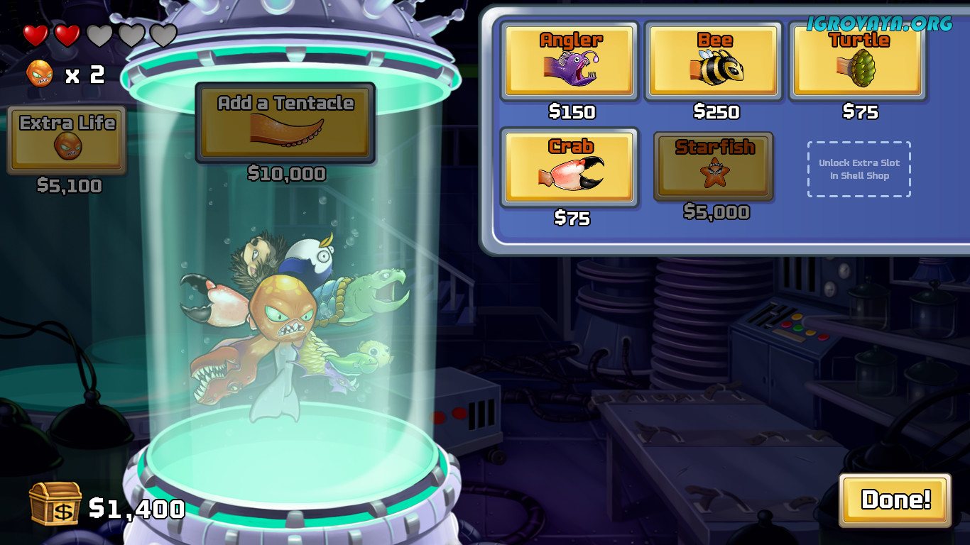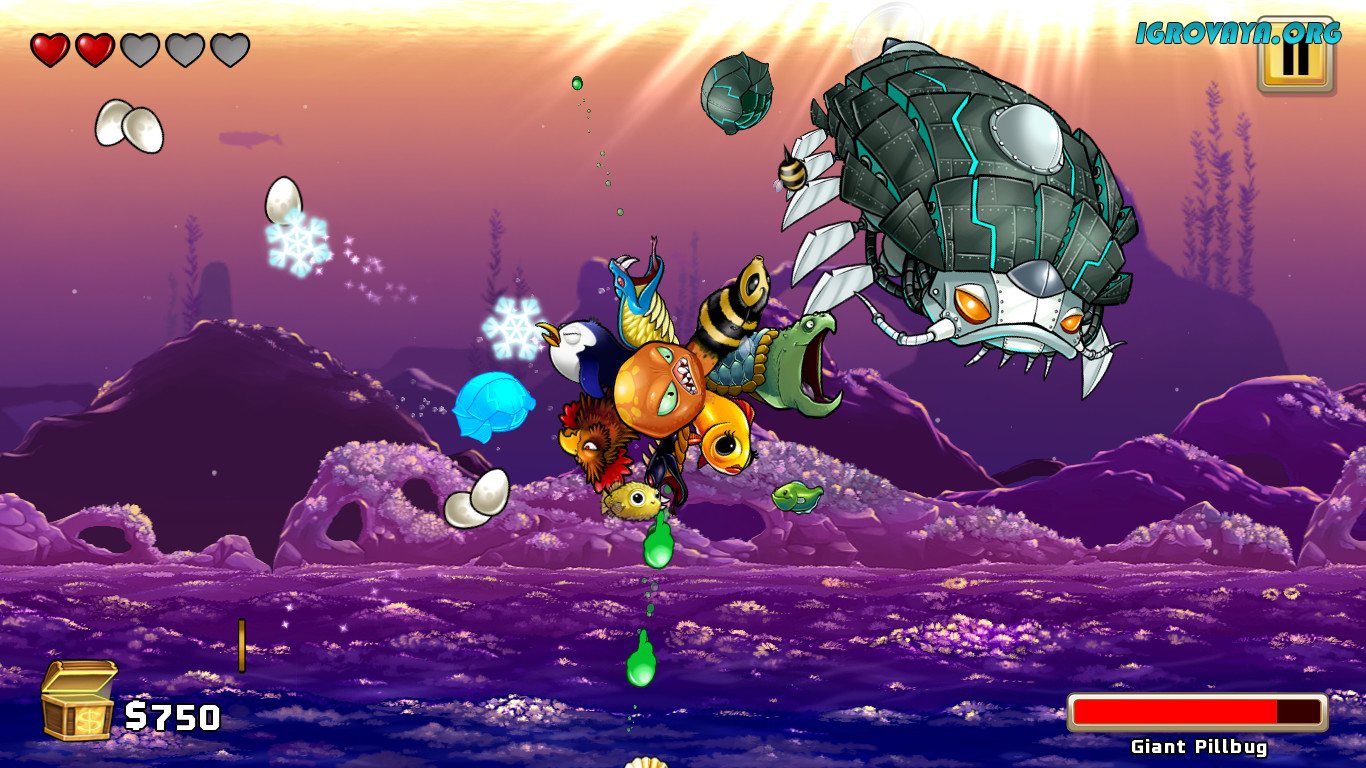 Падающие золотые монеты и ракушки должны вернуться на морское дно, где им и место. Собирайте валюту и между миссиями наведывайтесь к местному торговцу Угрю. Уж он-то найдет для вас самые редкие экземпляры, которые порадуют игроков. Но будьте готовы, что за эксклюзивные предметы придется заплатить кругленькую сумму. У нас вы можете скачать Octogeddon торрент последнюю версию бесплатно на компьютер.