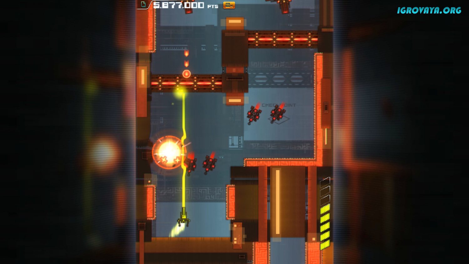 С каждым уровнем количество соперников и их возможности увеличиваются. Расправляйтесь с ними за наименьший промежуток времени, чтобы получить больше белых сфер. Они увеличивают счет и скорость передвижения, а также отображаются в финальной таблице. Не забывайте разрушать некоторые элементы окружения, чтобы собрать дополнительные очки.
