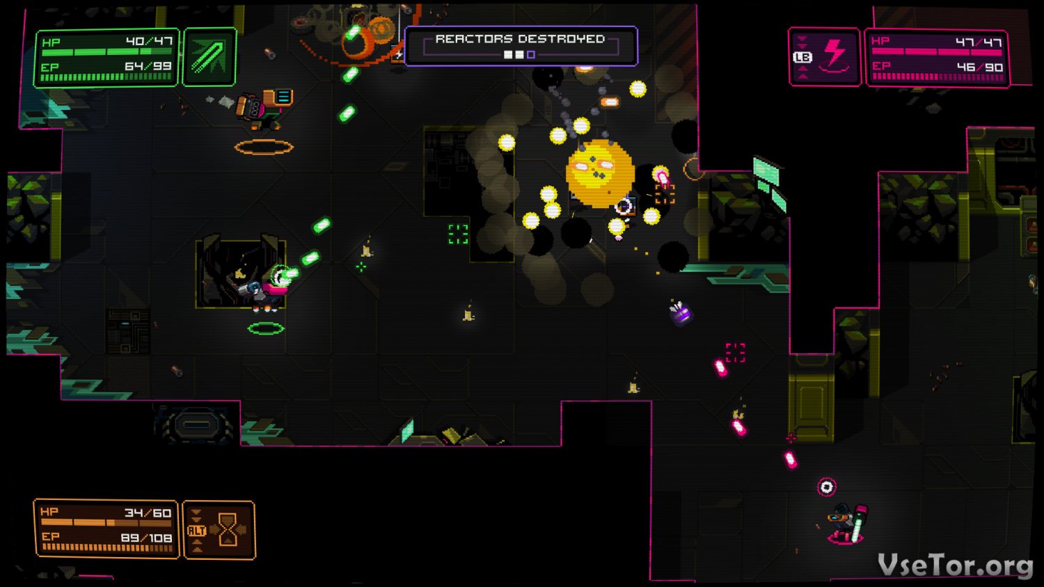 Еще одна особенность заключается в рандоме, который присутствует здесь во всех аспектах без исключения. Уровни генерируются случайным образом, враги появляются рандомно, оружие и улучшения тоже рандомно крафтятся, и также и во всем остальном. А еще в конце каждого нового уровня вас будет ждать эпический босс, от которого придется уворачиваться и уклоняться. В общем, атмосфера супер, да и динамика геймплея на высочайшем уровне. У нас вы можете скачать NeuroVoider торрент последнюю версию бесплатно на компьютер.
