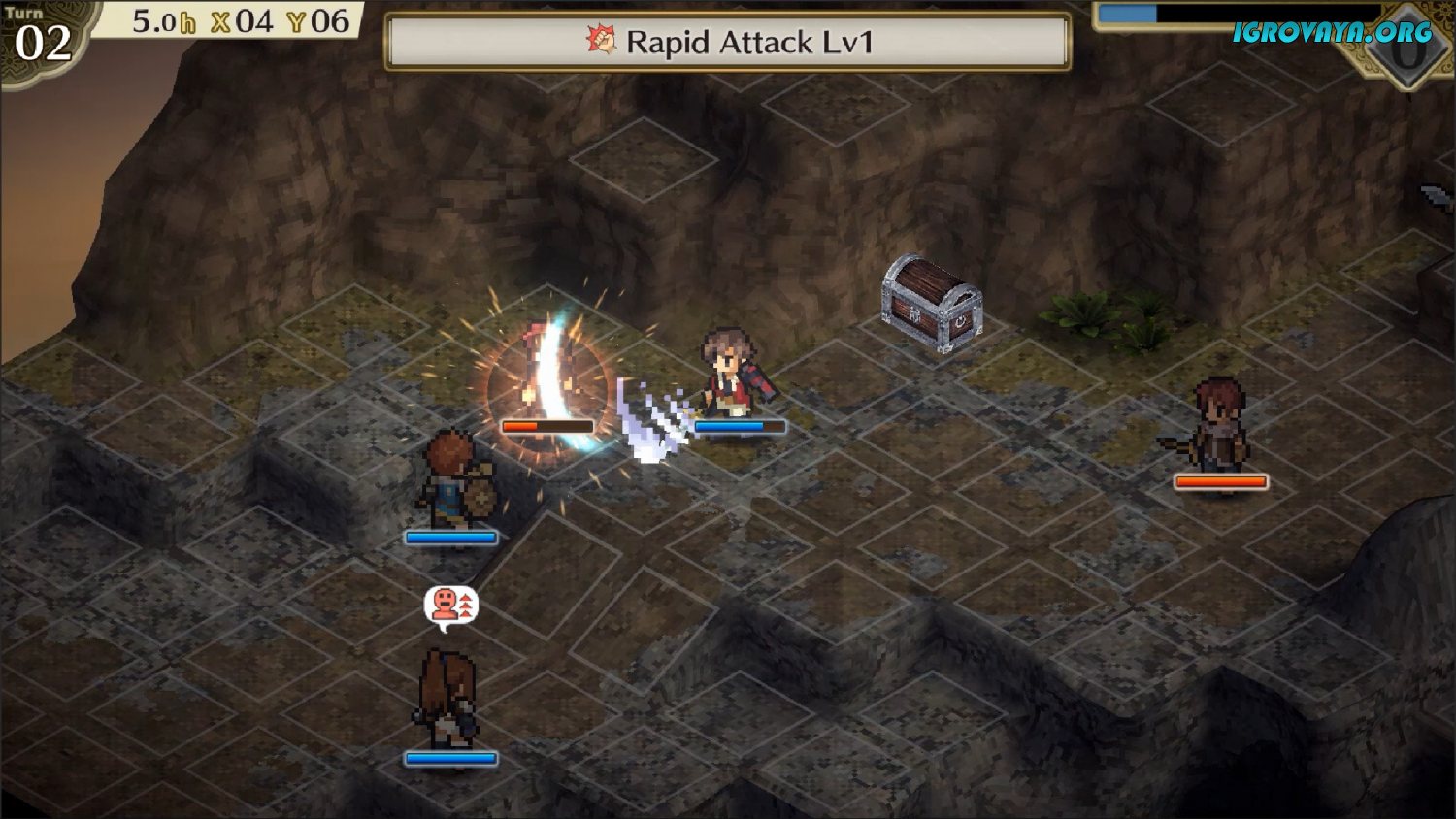 Помимо улучшенной графики, игра предлагает опробовать множество добавленных приемов и предметов, которые повлияют на исход сражений. Участвуйте в пошаговых битвах с монстрами, поочередно совершая ход за каждого члена отряда. Все они обладают уникальным оружием и навыками, попытайтесь максимально раскрыть их и прокачать. Каждый ваш удар накапливает шкалу в верхнем углу экрана, а после ее заполнения вы сможете воспользоваться особой атакой, которая нанесет максимальное количество урона по выбранному противнику.