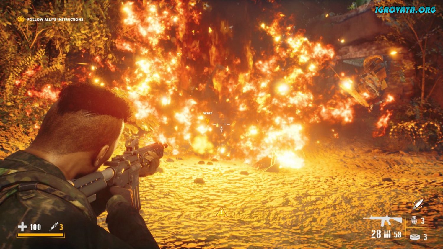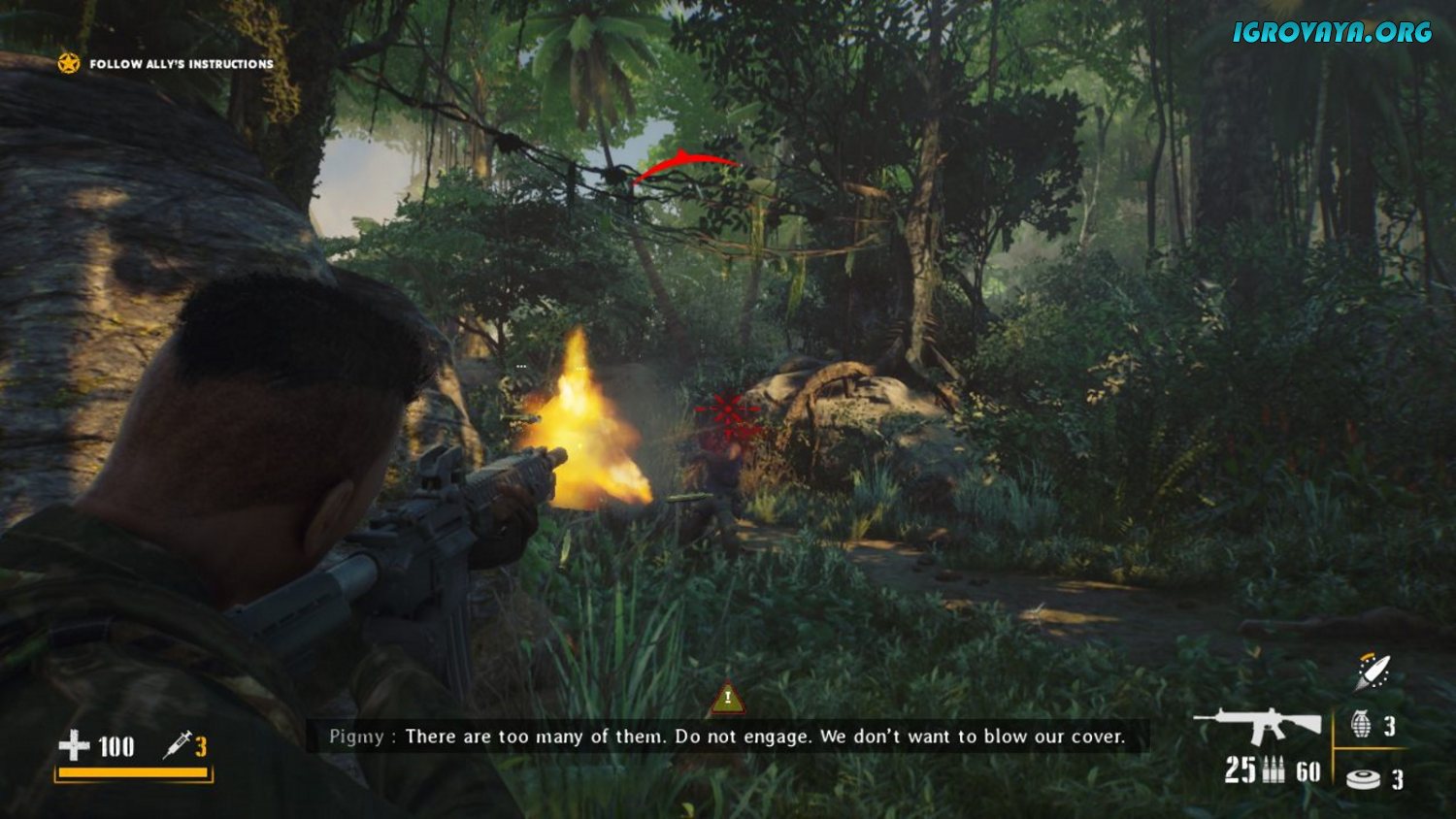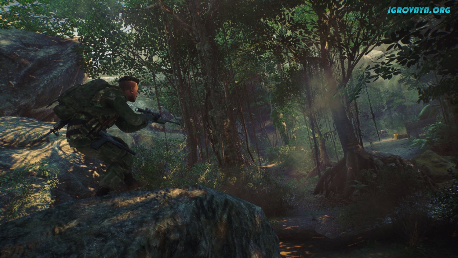 Станьте настоящим диким хищником, который умело прячется в густой листве тропиков. Наблюдайте из засады, выслеживая врагов через бинокль или прицел снайперской винтовки. Старайтесь не привлекать к себе излишнего внимания, иначе рискуете втянуться в неравный бой против нескольких десятков подготовленных солдат. Поочередно уничтожайте вражеских бойцов, заходя к ним со спины или расставляя ловушки. Поставьте несколько растяжек в местах, где проходят охранники, и приготовьтесь стать свидетелем эпичного взрыва.