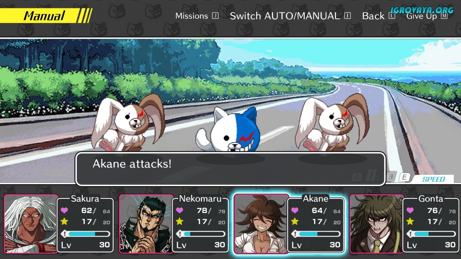 На вашем пути будут попадаться вражеские существа и могущественные боссы, расставленные Монокумой. Столкнитесь с противниками в пошаговых боях и поочередно выбирайте атаку для нанесения максимального количества урона. После боя вам начисляются очки опыта и валюта. Потратьте ее на приобретение оружия и брони у торговца, подготавливаясь к более сильным врагам. У нас вы можете скачать Danganronpa S: Ultimate Summer Camp торрент последнюю версию бесплатно на компьютер.