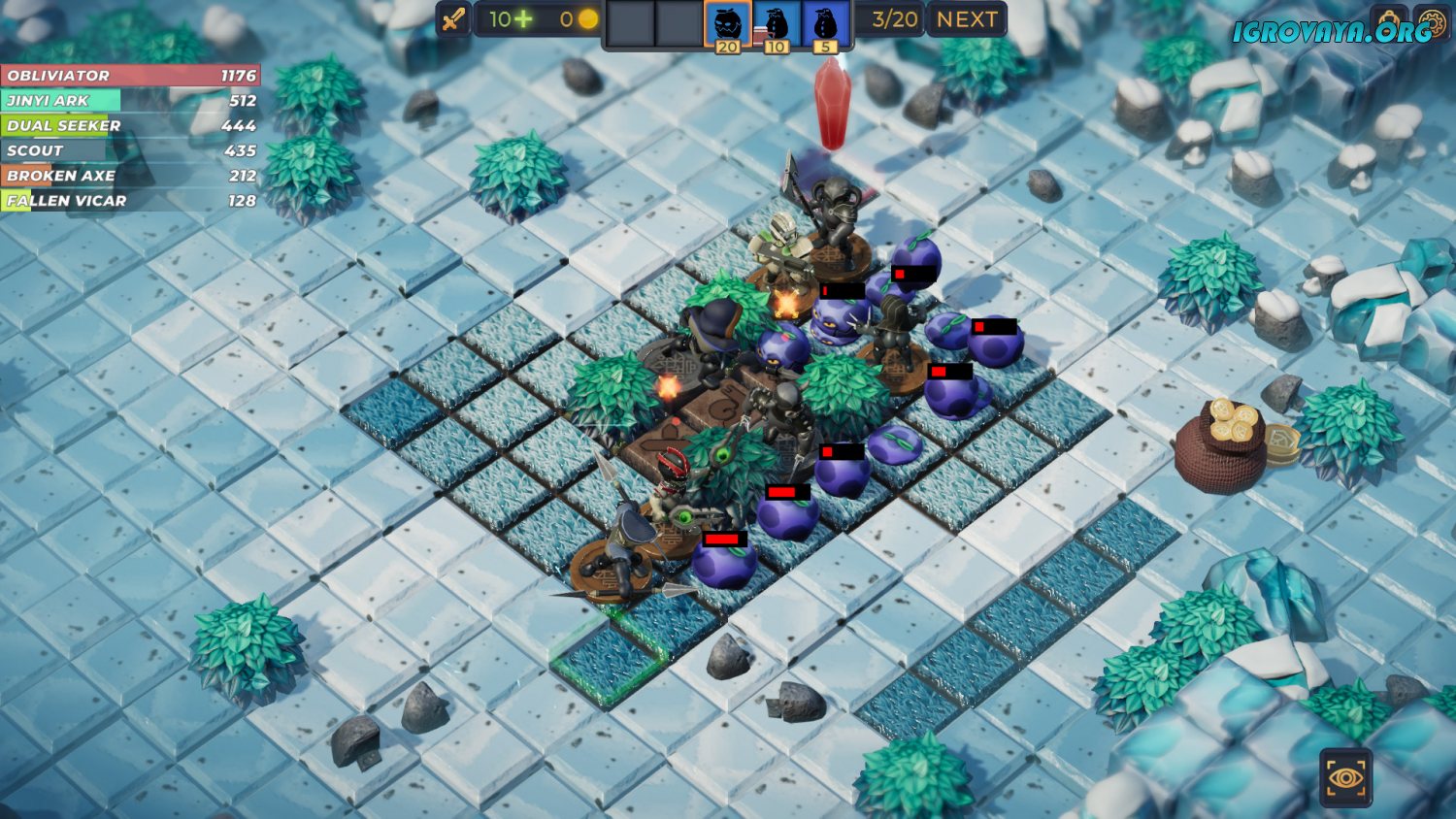 Tiny Tactics затягивает с первого запуска, подкупая не только приятной графикой и анимациями, но и геймплеем. Вы оказываетесь на поле, где голубыми стрелками указано движение вражеских юнитов. Помешайте им добраться до конечной точки, а для этого приобретайте воинов. Расставьте их в удобной последовательности, словно фигуры на шахматной доске. Старайтесь сделать путь врага как можно более извилистым, а для этого учитывайте предметы окружения и используйте их себе на пользу. После завершения расстановки запускайте уровень и следите как ваша армия справляется с заданием. После победы вам начисляются золотые монеты для покупки новых персонажей или улучшения уже имеющихся.