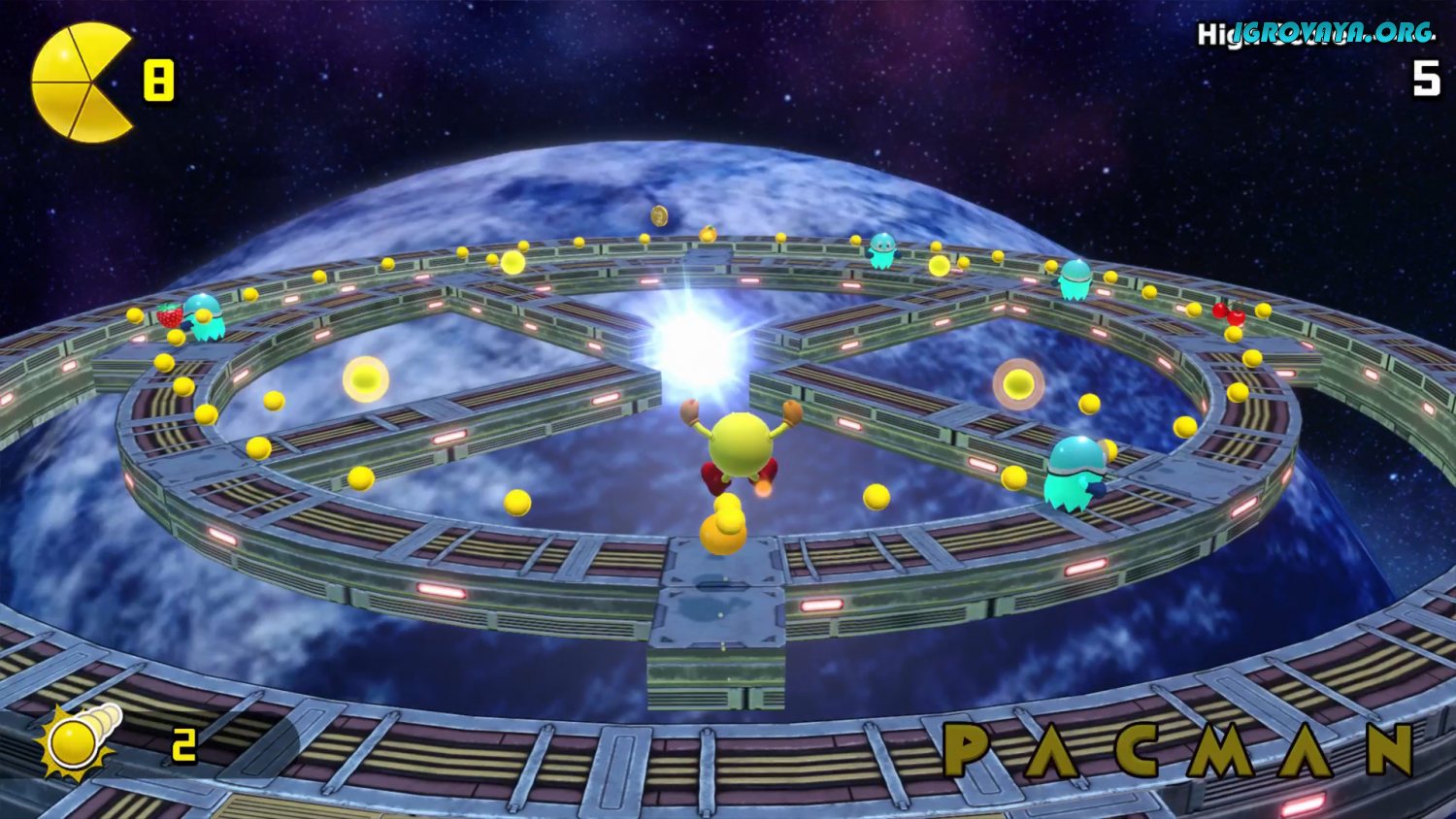 Попутно собирайте фрукты и буквы. Они генерируются случайным образом на карте, а также прячутся в сундуках и ящиках. После сбора всех символов, откроется небольшая мини-игра, имитирующая оригинальную аркаду. Они позволят заработать дополнительные баллы или найти ключ для освобождения друзей. У нас вы можете скачать PAC-MAN WORLD Re-PAC торрент последнюю версию бесплатно на компьютер.