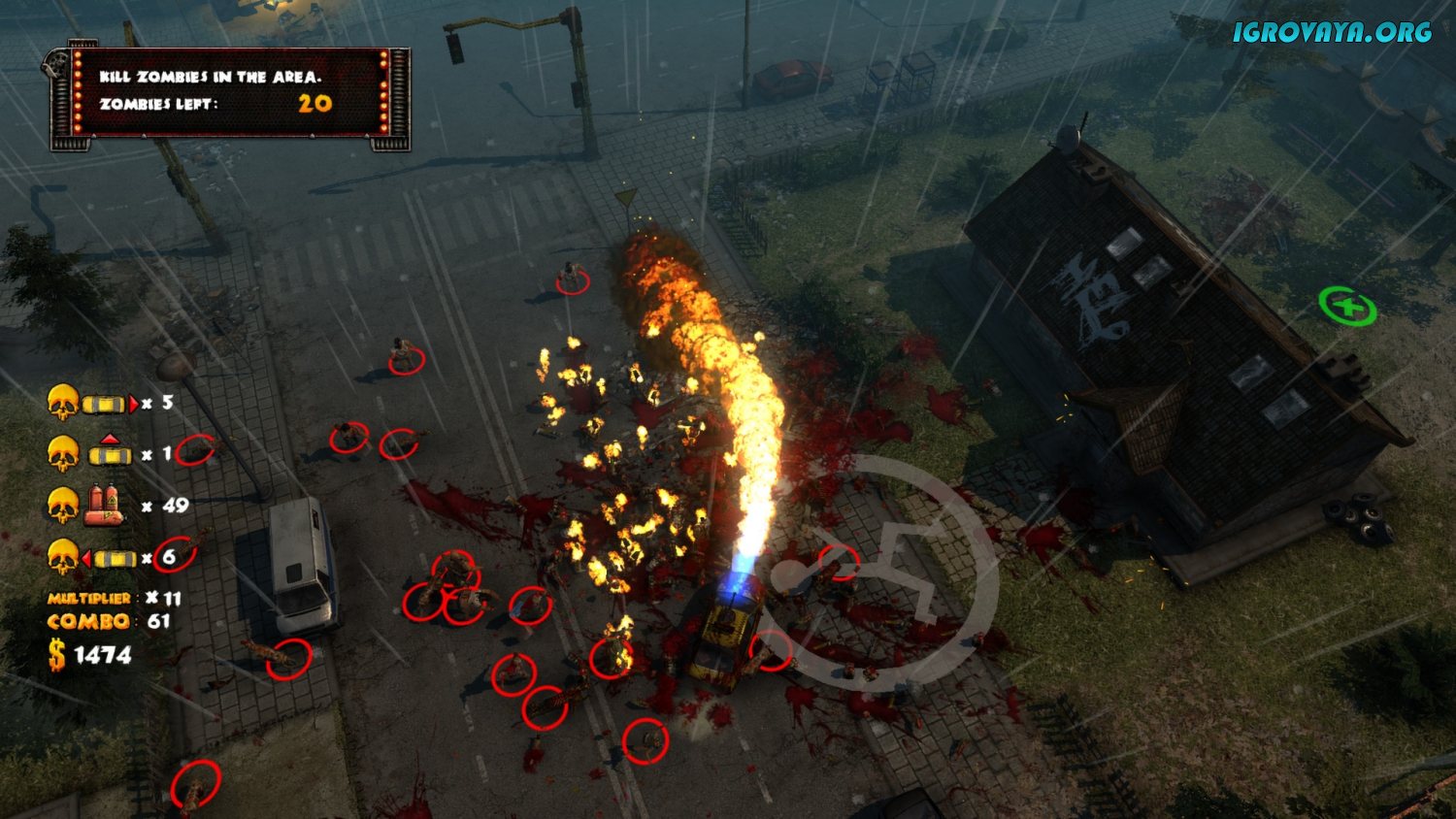 Сюжета здесь как такового нет. Вы простой выживший, оказавшийся в центре событий во время случившегося накануне зомби-апокалипсиса. Казалось бы, подобного уже много. Но тут вам не стрелялка или бродилка, а скорее симулятор смертельной гонки. Вся суть игры заключается в том, что здесь вы будете кататься по апокалиптическому миру на крутой тачке, оснащенной различными видами вооружений. Ваша задача проста – катайтесь, разгоняйтесь до невероятных скоростей и врезайтесь в толпу зомби, расстреливайте зараженных из пулеметов, поливайте их пламенем, пилите и делайте все, что посчитаете нужным. Вот такое вот веселье…