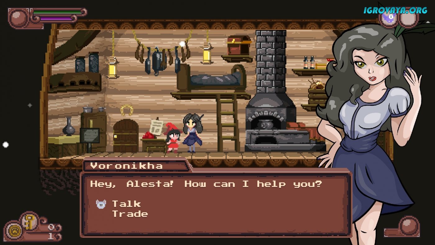 Алеста, это юная волшебница, обладающая необычными силами. Она может взвиваться высоко вверх, прыгать по головам врагов, доставать до труднодоступных мест, и делать многое другое. И все ее умения пригодятся вам в путешествии. А еще вам придется использовать их в эпических битвах с боссами.