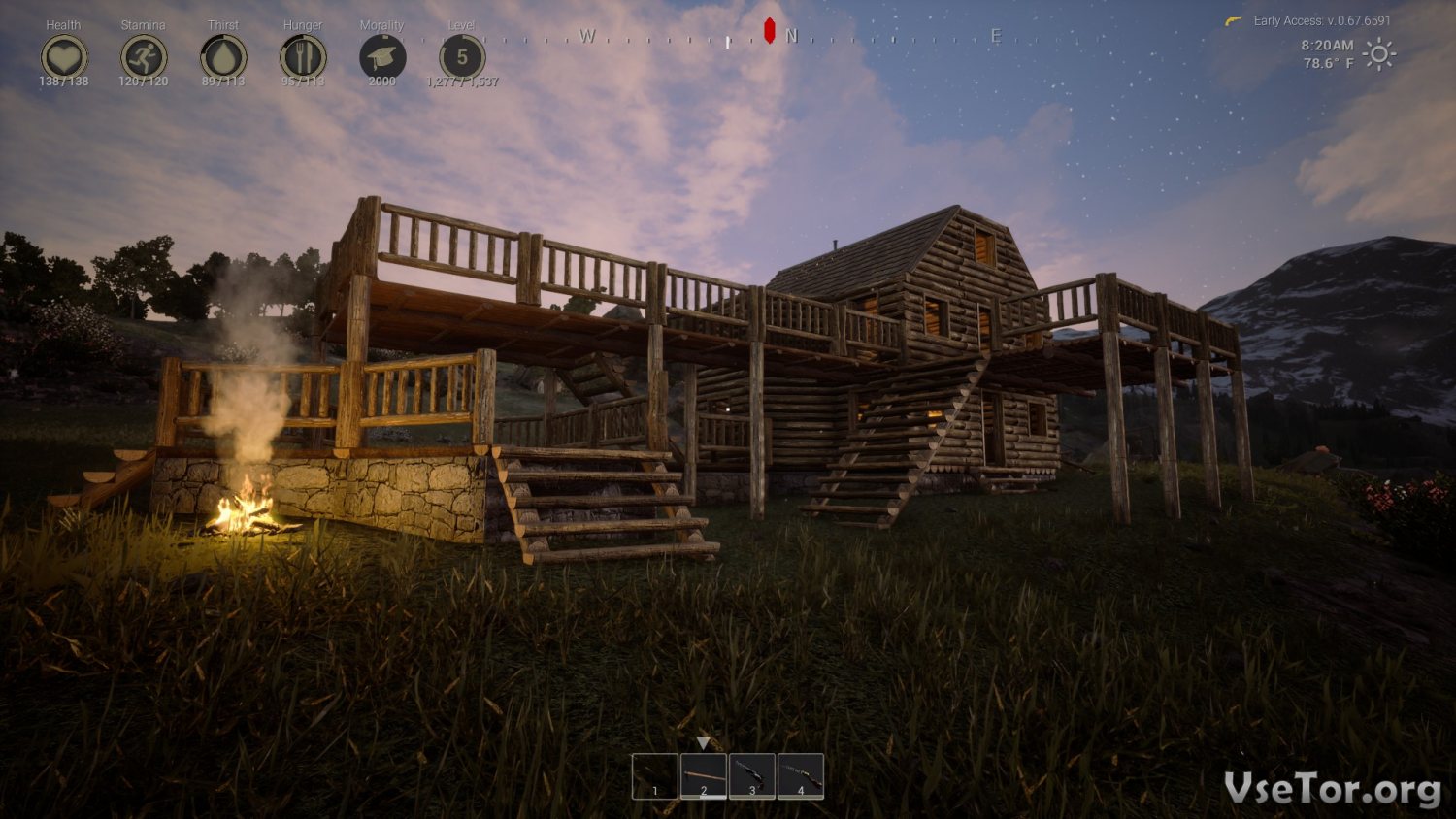 И первым делом хотелось бы сказать о том, что в этой игре вас ждет удивительный красивый открытый мир, живущий своей жизнью. Здесь по пустырям бегают животные, в поселениях живут люди, а в пустынях бандиты устраивают себе базы. А еще здесь постоянно меняется погода, а на замену дня всегда приходит вечер и ночь. И кстати, от времени суток будет зависеть состояние вашего героя и его потребности, ведь его будет мучать холод или жара, жажда или голод. И вот в этом-то мире вам и придется выживать.