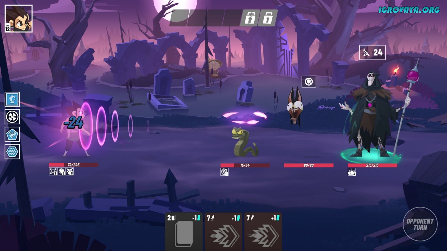 Проект поистине уникален не только из-за нестандартной задумки, но и благодаря качественному исполнению. Геймплей One More Gate: A Wakfu Legend сводится к исследованию процедурно сгенерированного мира. Собирайте мощные колоды из предложенных карт, а после оттачивайте мастерство на противниках. Главным отличием стало то, что для победы потребуется разработать верную тактику, ведь даже слабые противники запросто могут навалять вам в самом начале пути. Находите их слабые стороны, а после подберите подходящую карту или их комбинацию для нанесения максимального урона.