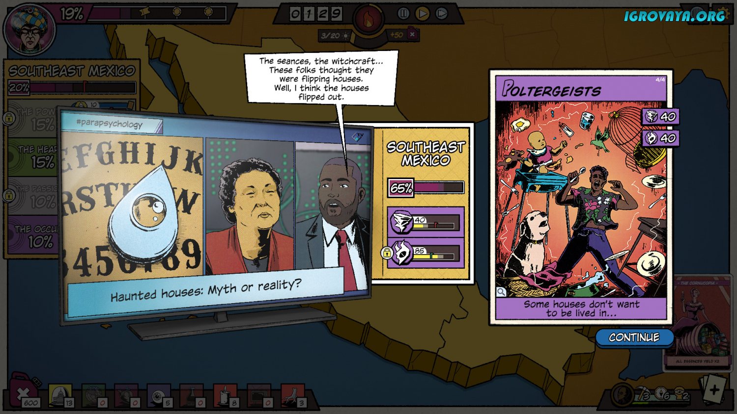 Разработкой проекта занималась та же студия, что и подарила нам Not Feed the Monkey, что уже гарантирует ядерную смесь из увлекательного безумия, где ужасы переплетаются с комичными ситуациями. The Fabulous Fear Machine затягивает с первых минут уже на этапе пролога, выполненного в качестве обучающей главы. Геймплей, как и во всех стандартных играх жанра, заключается в умелом распоряжении ресурсами в попытках захватить все новые территории, только вот в вашем распоряжении оказываются необычные материалы, а живые в виде доверчивых людей. Продумайте гениальный план и убедите жителей города в существовании призраков на местном кладбище, что Кровавая Мэри причастна к недавно случившемуся исчезновению, а по ночам улицы заполняют рептилоиды. Создавайте самые разнообразные коктейли и напишите свою историю, только не испугайтесь в процессе.