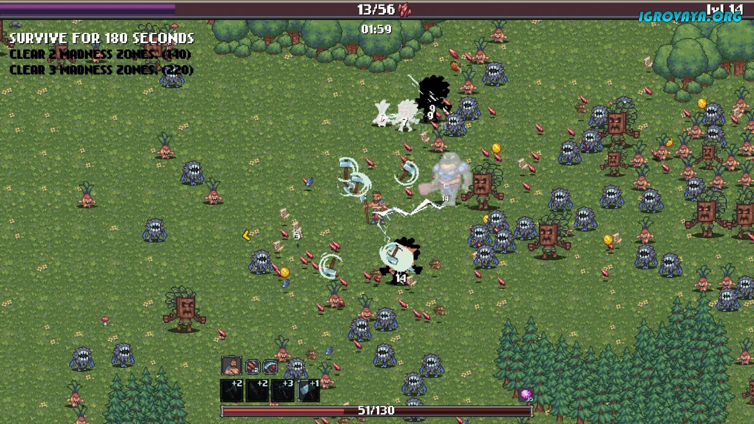 Преодолевайте препятствия в лице нескончаемых орд соперников, чья сила растет с каждой волной. В боях используются автоматические атаки, а значит от геймеров требуется не только ловко лавировать между врагами, но и собирать действенные комбинации из случайно выпадающих заклинаний. Заполняйте полоску опыта, чтобы получить вознаграждение и выбирайте его с умом, чтобы увеличить свою силу и повысить выживаемость.