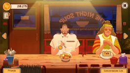 Небольшой, но крайне умиротворяющий проект нацелен на расслабленное прохождение. Окунитесь в спокойную атмосферу ночного мегаполиса, когда лишь редкие прохожие решают заглянуть в вашу лавку. Интуитивно понятный геймплей The Night Soup доступен геймерам с любым уровнем подготовки из-за чего каждый игрок сможет опробовать чарующую магию нестандартного заведения.
