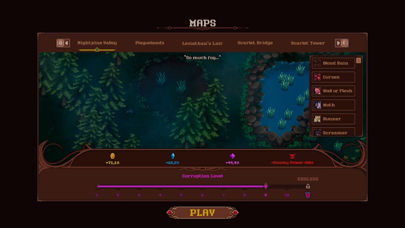 Инди-рогалик приятно удивляет обилием возможностей. Отличительной чертой Scarlet Tower стало наличие дневного и ночного цикла, которые плавно сменяются в ходе прохождения. Днем противников становится чуть меньше, зато ночью начинается настоящее веселье: существа появляются целыми толпами и запросто способны зажать вас в кольцо.