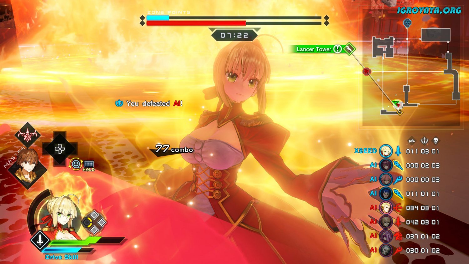 Что же до заданий, так они остались стандартными по своей сути. К примеру, в одном задании вам придется оборонять ключевых персонажей, в то время как в другом задании вас попросят уничтожить того или иного мини-босса. А еще появился новый дополнительный режим – «Битва мастеров», где вы сможете поучаствовать в сражениях с многочисленными игроками со всего мира. Сражайтесь, побеждайте, испытывайте героев и проходите задания, устанавливая новые рекорды. У нас вы можете скачать Fate/EXTELLA LINK торрент последнюю версию бесплатно на компьютер.