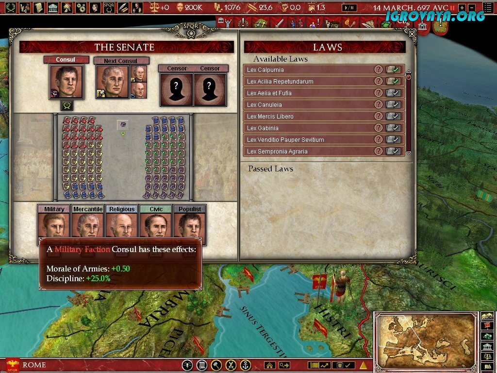 Но неприятности исходят не только извне. Местные жители выскажут свое недовольство не только мирными протестами, но и целыми восстаниями под предводительством оппозиционных аристократов. Чуть реагируйте на любые изменения внутри империи и не позвольте противникам окрепнуть и развалить страну изнутри. У нас вы можете скачать Europa Universalis: Rome Gold торрент последнюю версию бесплатно на компьютер.