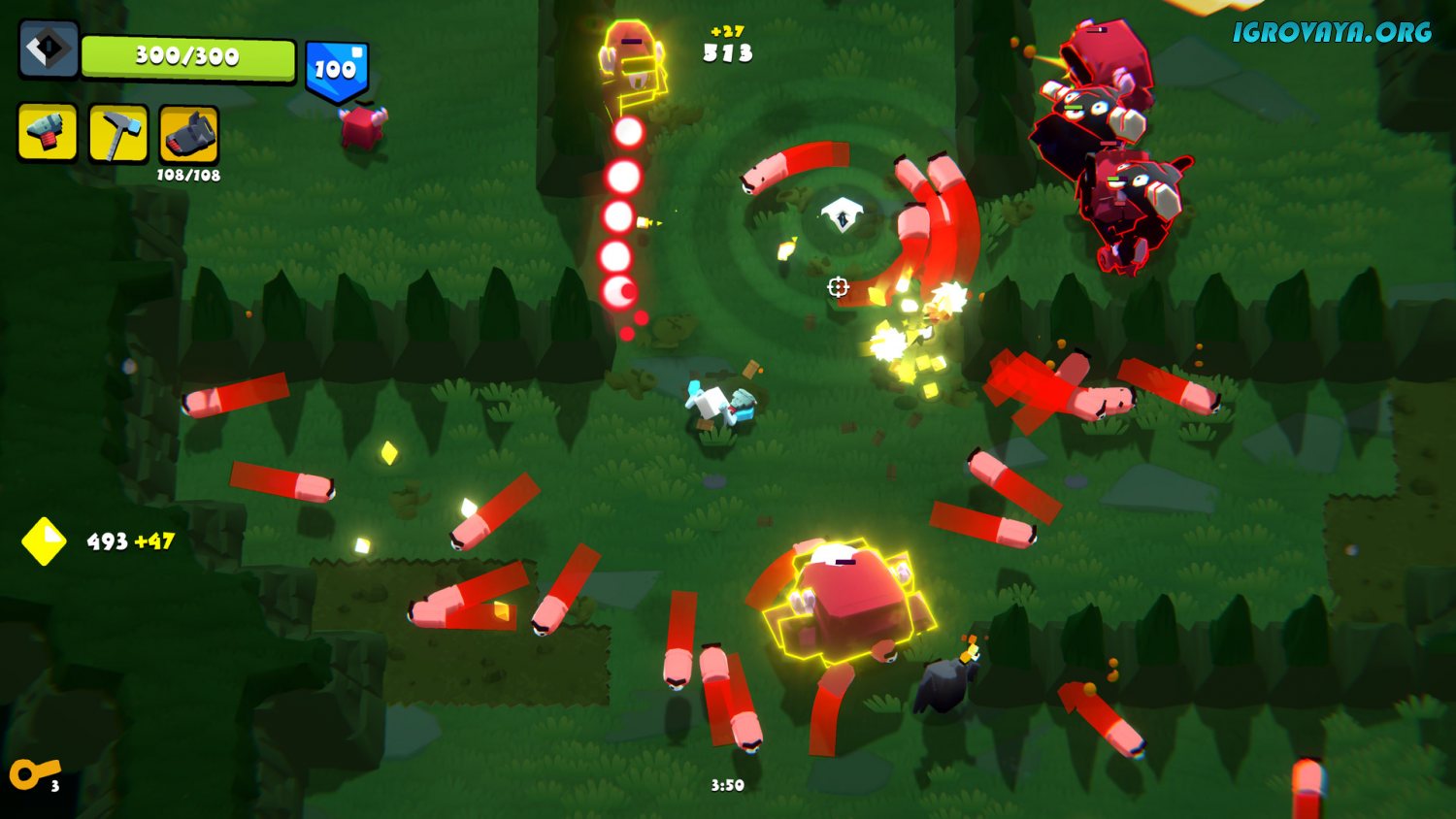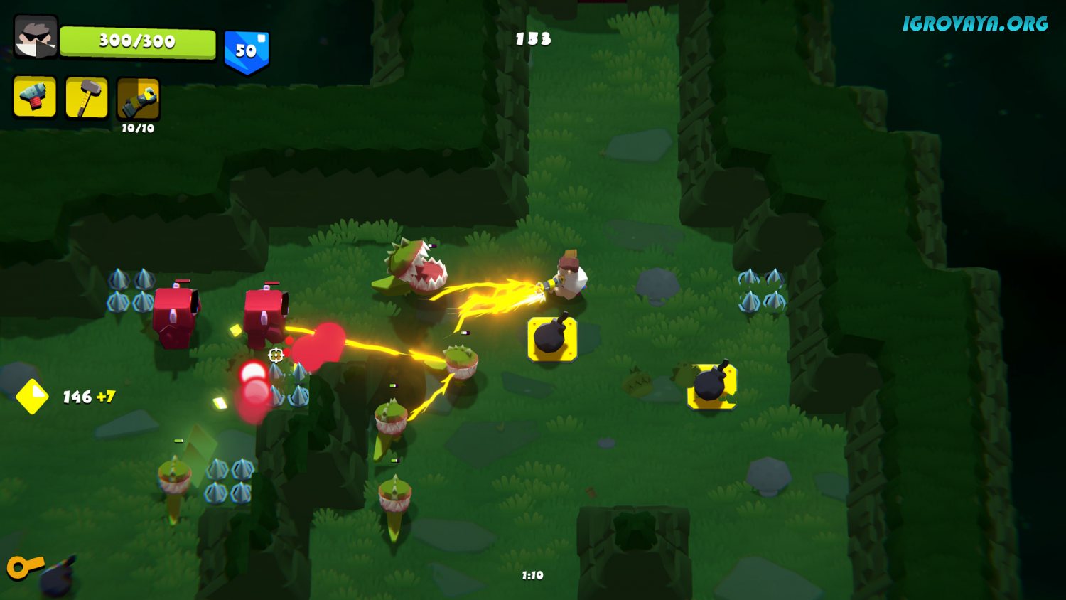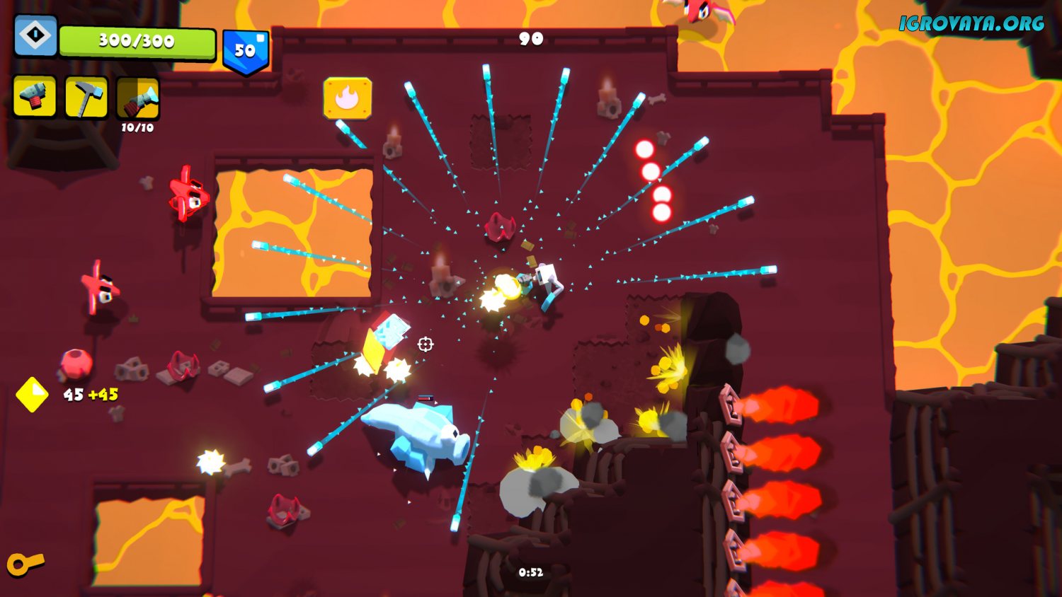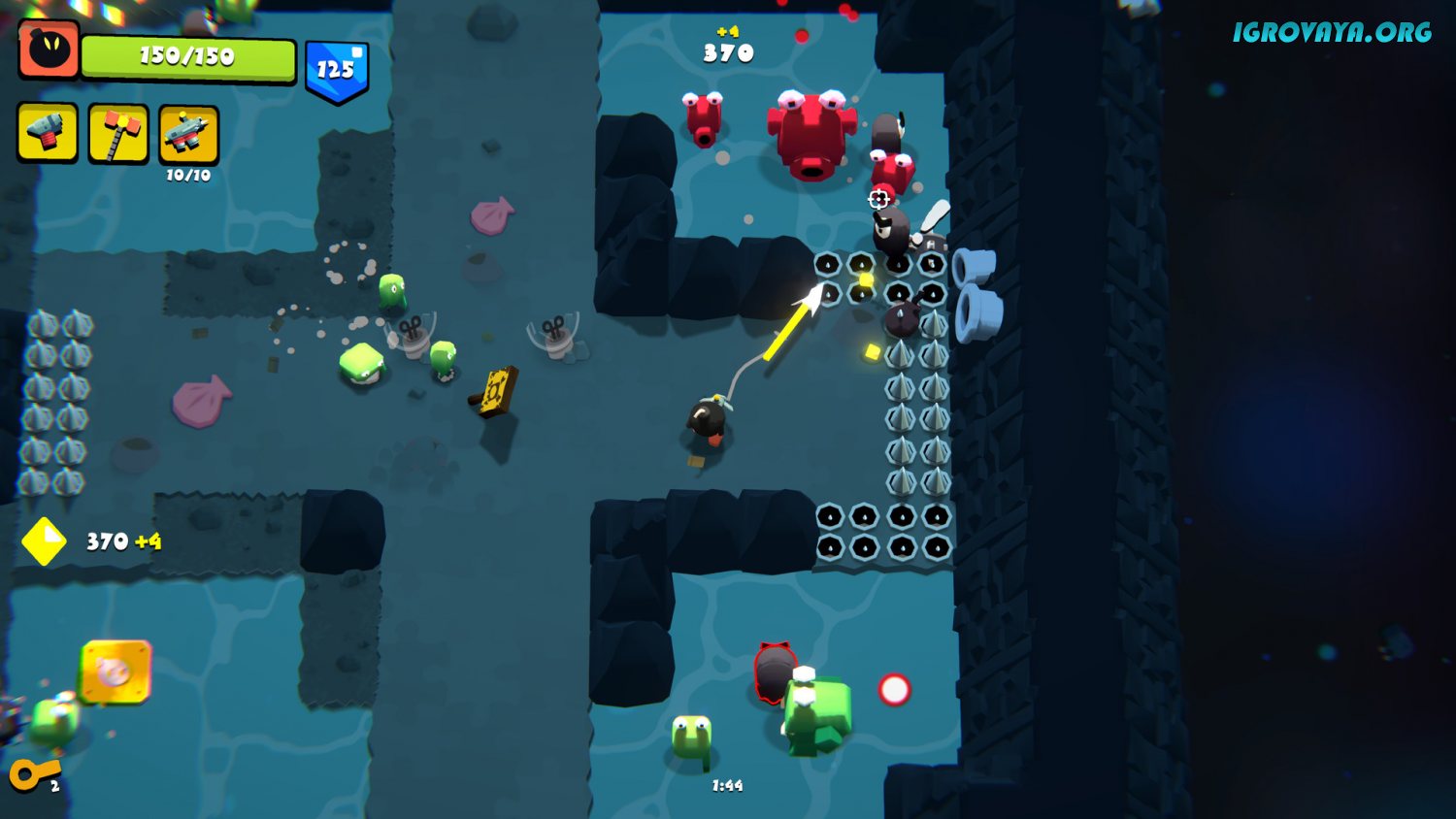 Что касается уровней, так они представляют собою что-то вроде арен. Попадая на очередную арену, игрок сразу же подвергается нападению монстров. Это могут быть монстры, давящие исключительно «мясом», или стреляющие существа, или еще что-нибудь в этом роде. Ваша задача быстро реагировать на происходящее на экране, избегать контакта и на ходу выстреливать сотни снарядов в монстров.