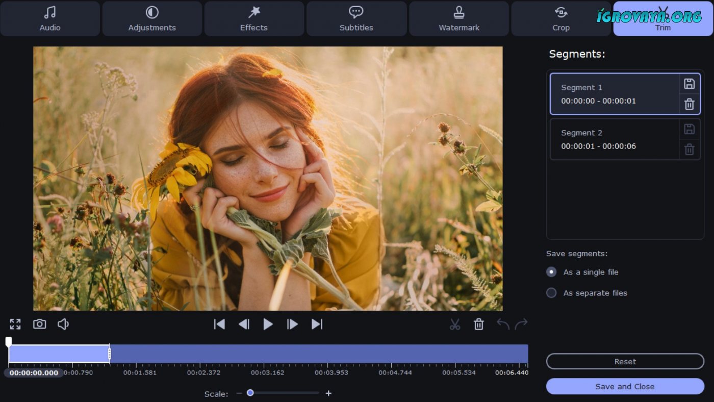 Автоматически конвертируйте выбранные файлы в Мовави Видео Конвертер Премиум 2022 в более чем 180 форматов, не теряя качества и внося при необходимости незначительные изменения. Хотите вырезать аудио дорожку из видео? Не проблема, ведь, помимо этого, вы сможете настроить ее громкость, обработать звук и убрать лишние шумы. Кажется, что клип можно улучшить? Опробуйте нелинейный монтаж, нарезая кадры в произвольном порядке, наложите эффекты из встроенной библиотеки и добавьте надписи. Стоит отметить, что данная программа не заменит узконаправленных ПО, но технологичный искусственный интеллект позволит быстро и эффективно улучшить готовый результат с помощью базовых манипуляций.