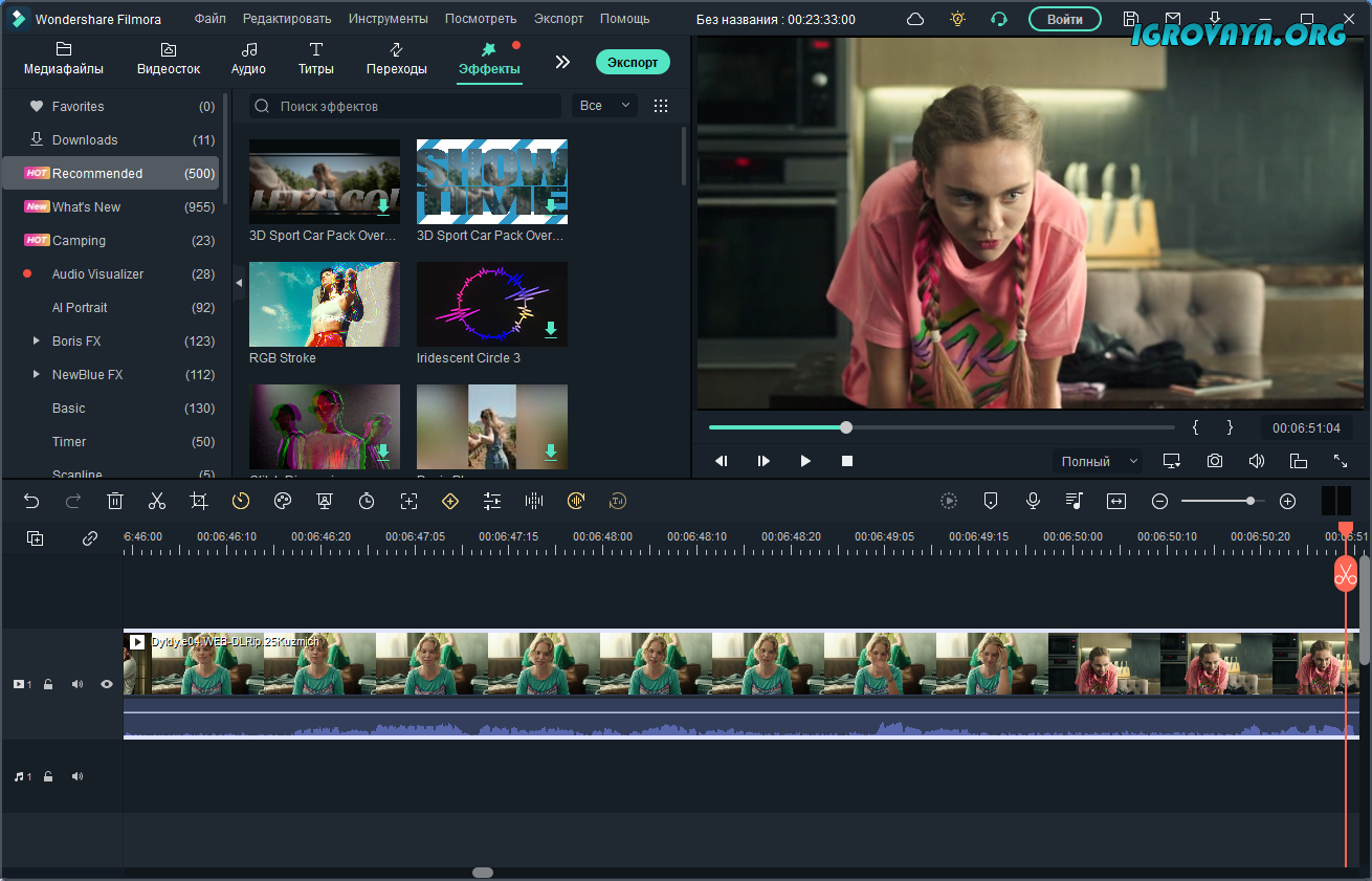Отличительной чертой Wondershare Filmora 11 стала расширенная встроенная библиотека со множеством дополнительного контента. С ее помощью вы запросто выберите подходящие переходы, найдете наиболее удачный фильтр и многое другое. Экспериментируйте с результатом и используйте разные дорожки, чтобы воплощать оригинальные задумки в жизнь, подставляя как свою музыку, так и пользуясь встроенными аудио вставками.