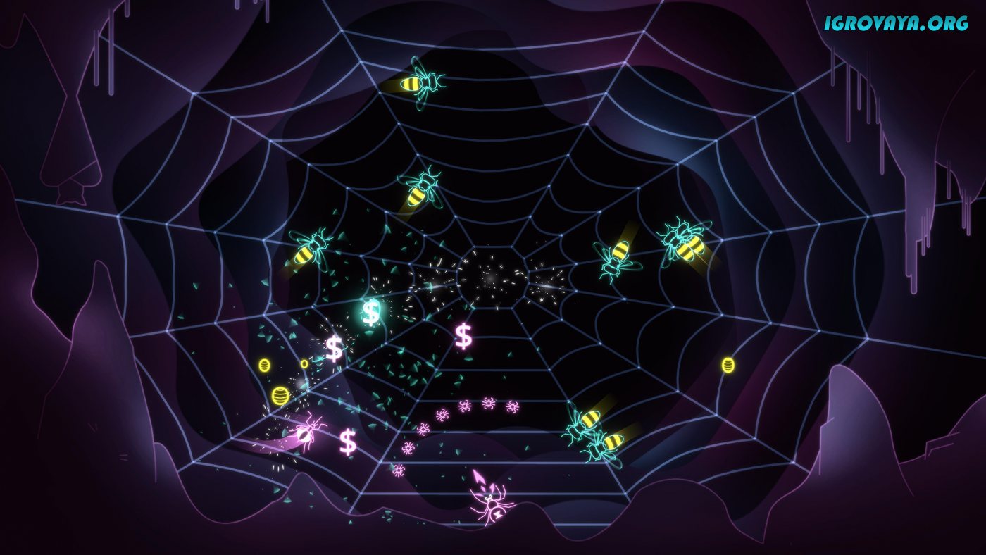 Black Widow: Recharged — это бодрая аркадная игра в жанре shoot’em up, где вам предстоит защищаться от нескончаемого наступления насекомых. В роли паука ловко перемещайтесь по паутине и уничтожайте всех, кто в нее угодил. Кажется, что все достаточно просто? А, нет, ведь с каждым последующем уровнем чисто противников растет в геометрической прогрессии из-за чего вам предстоит быстро реагировать на меняющуюся обстановку и подстраиваться под складывающуюся ситуацию.