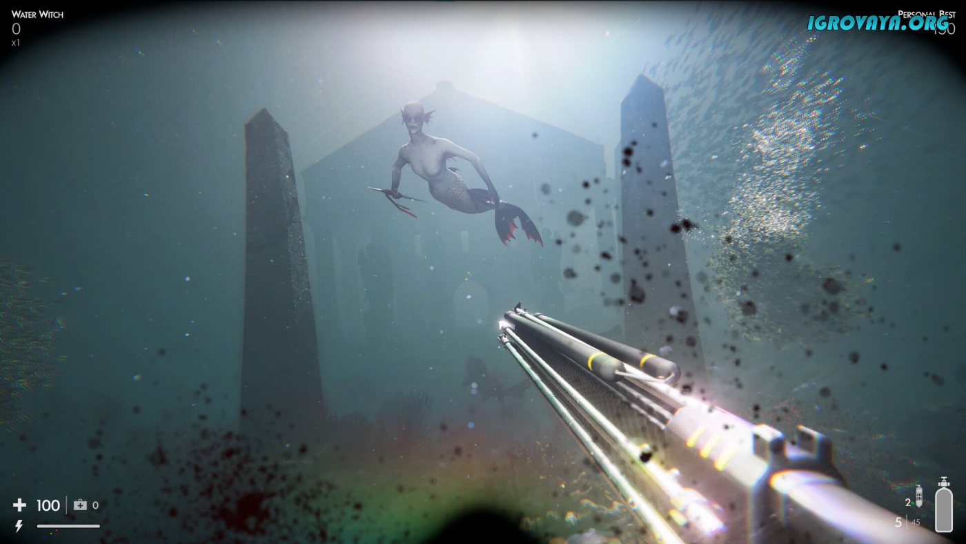 Необычное управление станет еще одной особенностью, ведь вы сможете перемещаться буквально в любом направлении. Совершайте погружения в темные недра разрывов или, наоборот, всплывайте из глубин, чтобы лучше разглядеть происходящее. Опасайтесь многочисленных противников, ведь помимо привычных морских обитателей по типу акул вы столкнетесь с мифическими тварями в качестве сирен и прочих. Используйте найденное оружие для защиты себя. Верный гарпун станет неотъемлемым помощником по уничтожению или отпугиванию соперников, поэтому самое время отточить навыки и совершить переход из жертвы в охотника. У нас вы можете скачать Death in the Water 2 торрент последнюю версию бесплатно на компьютер.