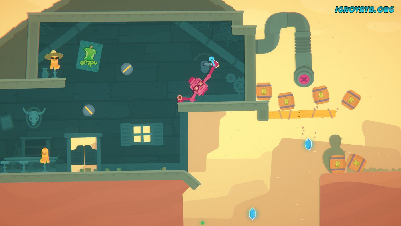 Игровой процесс напрямую завязан на необычном управлении, ведь здесь игроки будут по отдельности контролировать каждую конечность героя. Заранее стоит отметить, что Robotry! не поддерживает связку клавиатуры и мыши, а для прохождения потребуется контроллер. Каждый из стиков управляет отдельной ногой и вам придется шаг за шагом приближаться к цели. Освойте необычную технику движения, а также используйте окружающую среду, которая выступит в качестве помощника. Зацепитесь за уступ и раскачивайтесь на руке, чтобы преодолеть пропасть, а в случае неудачи попробуйте снова.