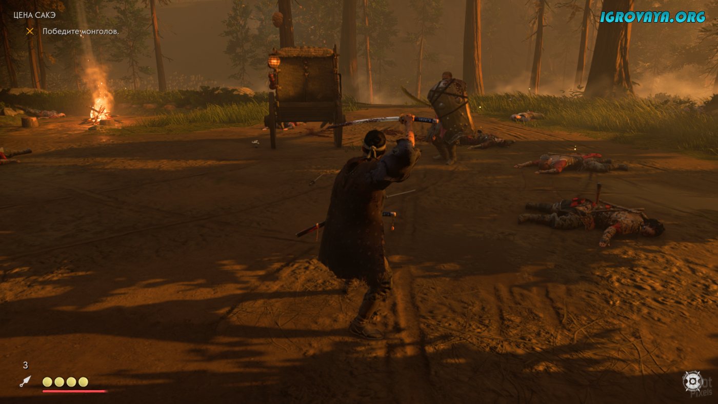 Боевая система – это поэзия стального клинка. Четыре стойки меча требуют от игрока не просто нажимать кнопки, а чувствовать ритм сражения. Парирование атак щитоносцев сменяется стремительными ударами по копейщикам, а когда численный перевес врага становится критическим, Дзин превращается в Призрака – ночного кошмара монголов, использующего дымовые шашки и скрытые клинки. Особенно впечатляют дуэли на рассвете, где каждая ошибка может стать последней.