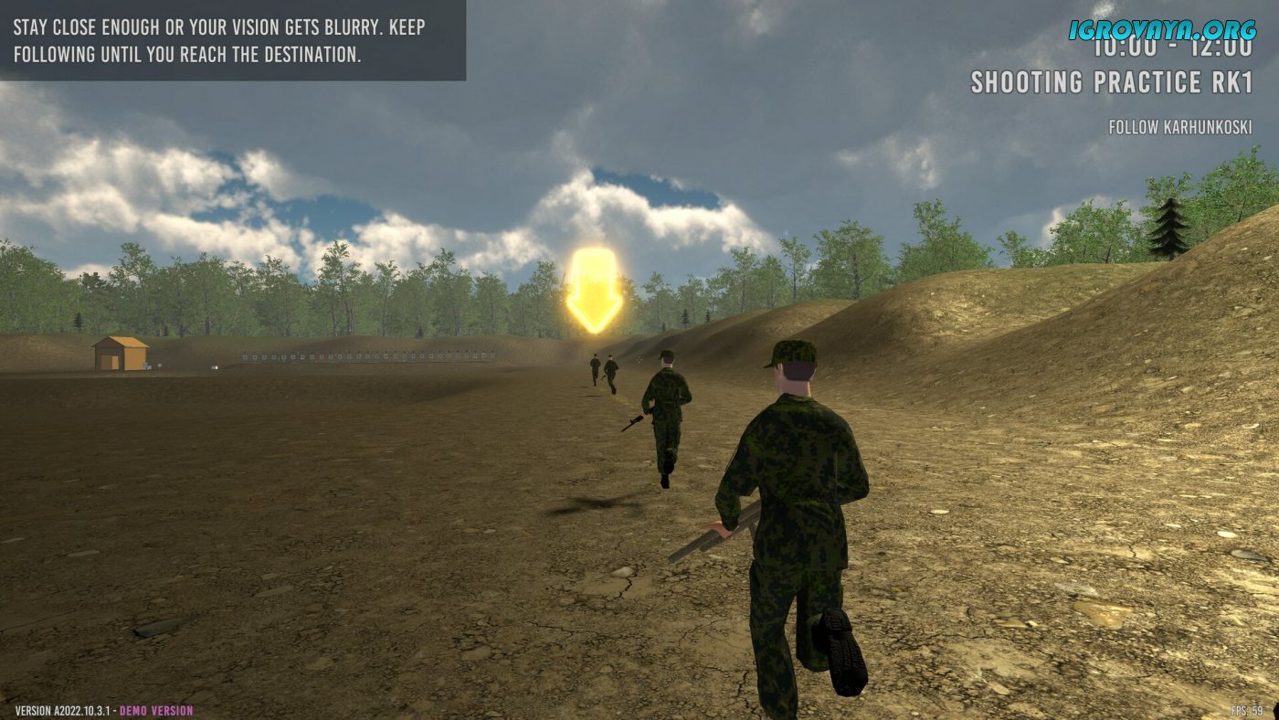 Продержитесь четыре недели вдали от дома и попытайтесь не потерять рассудок от происходящего. Игровой процесс представляет собой смесь из нескольких жанров, где вам следует двигаться за повествованием и участвовать в предложенных квестах. Приготовьтесь выполнять различные поручения представленные в формате мини-игр. Преодолевайте полосу препятствий демонстрируя наработанные навыки, стреляйте по мишеням в лютый ливень со сбивающимся прицелом и маршируйте в строю используя стрелочки для отточенных движений. Снова переживите армейский опыт, но взгляните на события под другим углом, ведь на этот раз вы испытаете неподдельное чувство наслаждения, что уютно устроились дома, а не находитесь на месте игрового персонажа. У нас вы можете скачать Finnish Army Simulator торрент последнюю версию бесплатно на компьютер.