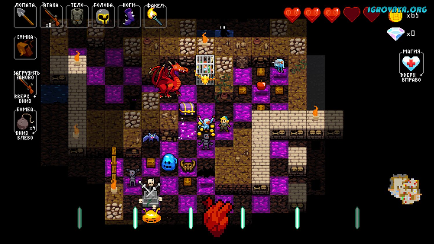 А еще на каждом уровне вас будут ждать многочисленные секреты и сокровища, на поиск которых вам также придется потратить немало времени. Но находя сокровища, вы будете становиться сильнее, и сражаться с монстрами будет становиться лишь легче. А еще, после каждой новой смерти вы будете рандомно открывать новое оружие, заклинания, предметы, и навыки. Благодаря этому геймплей все время будет меняться, что довольно-таки неплохо… У нас вы можете скачать Crypt of the NecroDancer торрент последнюю версию бесплатно на компьютер.