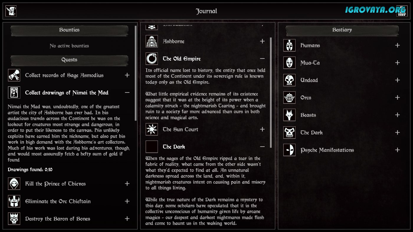 Визуальный стиль игры напоминает старые настольные RPG - минималистичные, но атмосферные иллюстрации, стилизованный интерфейс и обилие текстовых описаний. Гибкие настройки сложности позволяют подстроить игру под любой уровень подготовки - от новичков до хардкорных игроков, предпочитающих режим пермадес. У нас вы можете скачать Grim Quest торрент последнюю версию бесплатно на компьютер.