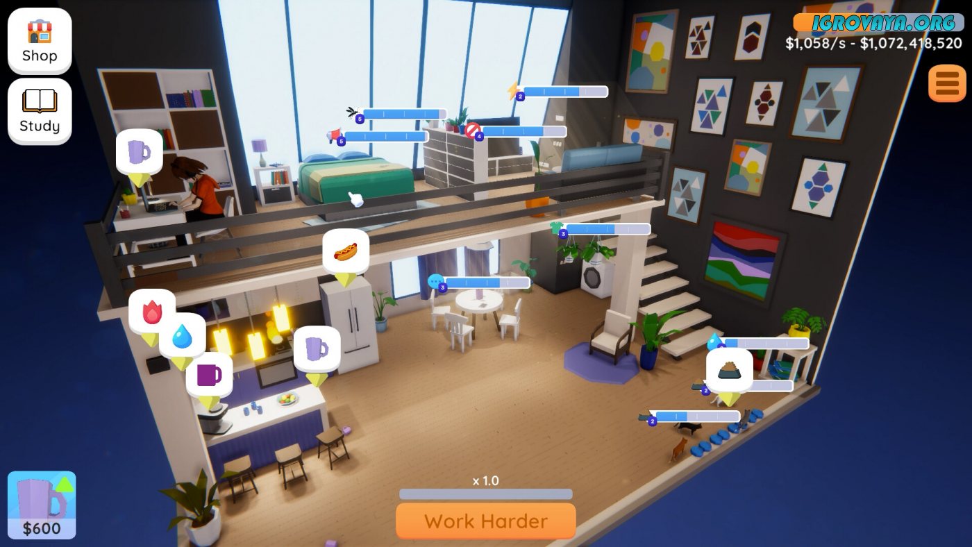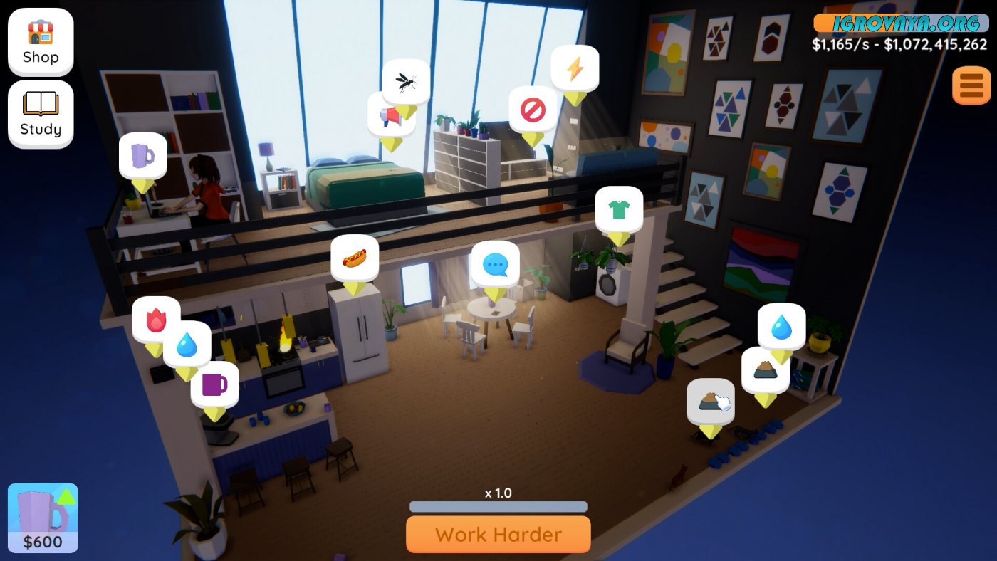 Совсем скоро вы поймете, что с таким количеством обязанностей сложно справляться в одиночку, но не стоит переживать, ведь вы всегда можете заглянуть во внутриигровой магазин. На скопленные от работы средства Аяме сможет приобретать различные изобретения, которые позволят автоматизировать некоторые процессы и сэкономить немного времени. Модернизируйте жилище и сделайте из него высокотехнологичное убежище по типу умного дома. У нас вы можете скачать Home Office Simulator торрент последнюю версию бесплатно на компьютер.