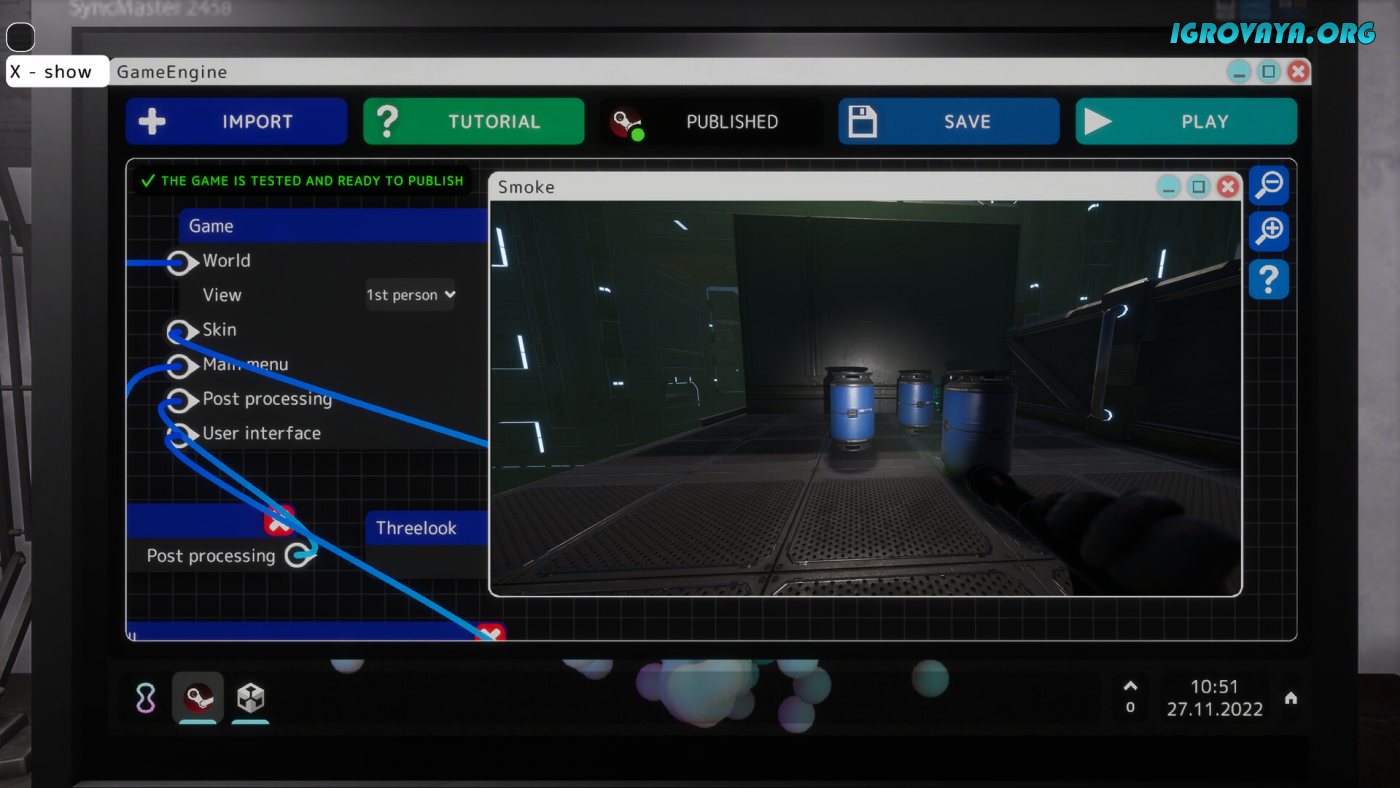 Конечно же ключевой особенностью станет то, что вы займетесь разработкой собственного проекта! Выберите жанр и сложность, постоянно изучайте что-то новое, а также составьте детальный план, который позволит не отклоняться от намеченной траектории и сдать свой продукт вовремя. Ищите спонсоров со всего мира, ведите переговоры насчет финансирования и займитесь другими делами, которые позволят приблизить мечту. Пройдите полный и насыщенный путь от ничего не знающего новичка до профессионала, а также получили всеобщее признание, которое лишь докажет ваше мастерство в выбранном направлении.
