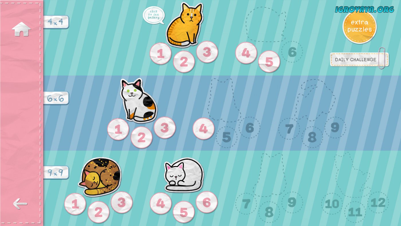 Кошки — замечательные и крайне милые существа способные с первого взгляда очаровать любого. В Sudocats вам предстоит не просто решать судоку, а постепенно пополнять свои ряды пушистых любимцев и приводить в свой дом новых представителей домашних животных. Чем больше в вашем арсенале котов, тем сложнее становятся пазлы, но это еще не все, ведь с каждым уровнем вам откроется интересная сводка о предысториях пород и интересных фактах о любимцах. Пополняйте свой багаж знаний в игровом формате, а если котики вам не по душе, то вы в любой момент сможете переключиться на классические цифры.