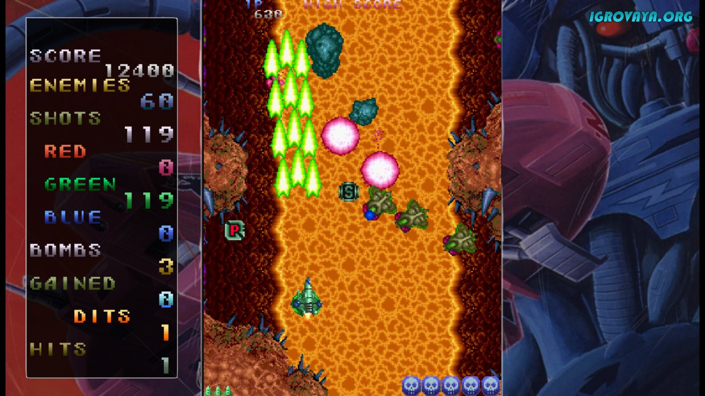 Насыщенный геймплей предлагает ловко уворачиваться от вражеских снарядов и наносить удары точно по врагам. За удачные комбинированные атаки зарабатывайте специальные очки, которые пригодятся для модернизации корабля и приобретения нового смертоносного оружия для эффективных битв. У нас вы можете скачать Truxton торрент последнюю версию бесплатно на компьютер.