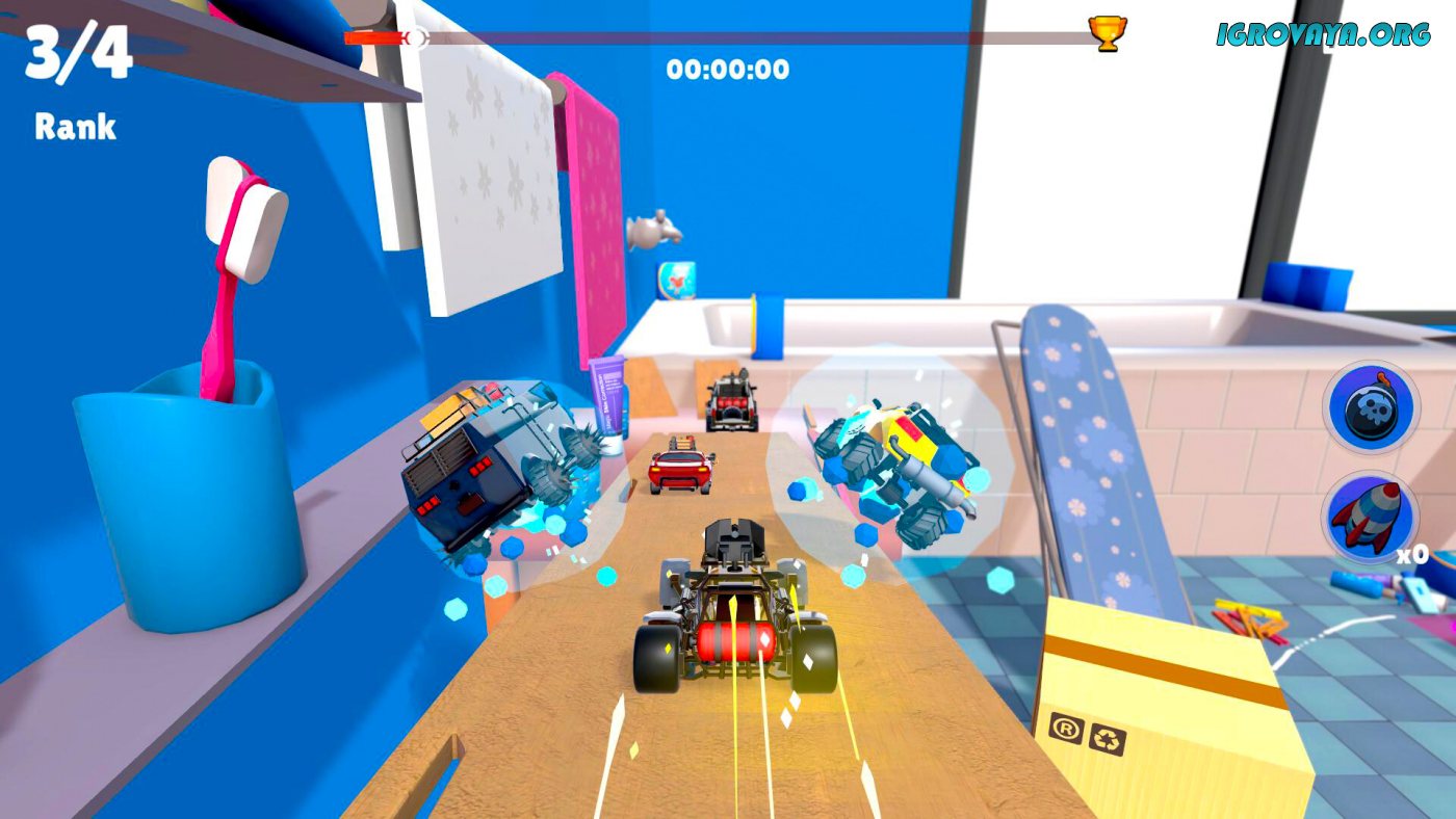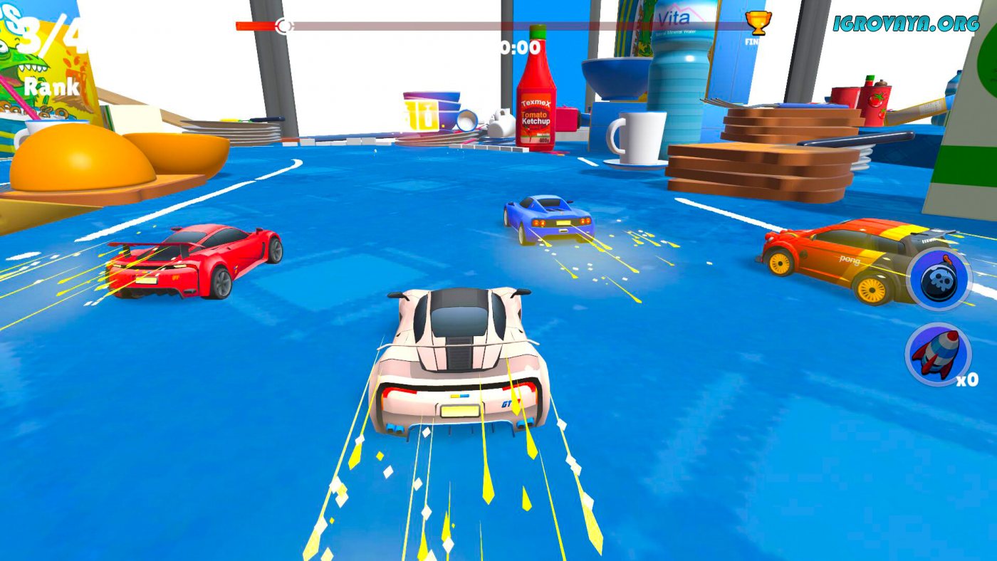 В отличие от большинства гоночных игр, в данном проекте вы не встретите поддающимся вам противников в лице компьютера. Напротив, при каждом заезде ИИ сделает все возможное, чтобы обогнать вас и первым финишировать в сложном чемпионате. К счастью, в вашем распоряжении окажутся различные приспособления для замедления соперников. Замораживайте их прямо во время езды или сбивайте с трассы, чтобы выиграть немного времени и доехать до конца кажущейся бесконечной дороги. У нас вы можете скачать Toy Rider торрент последнюю версию бесплатно на компьютер.