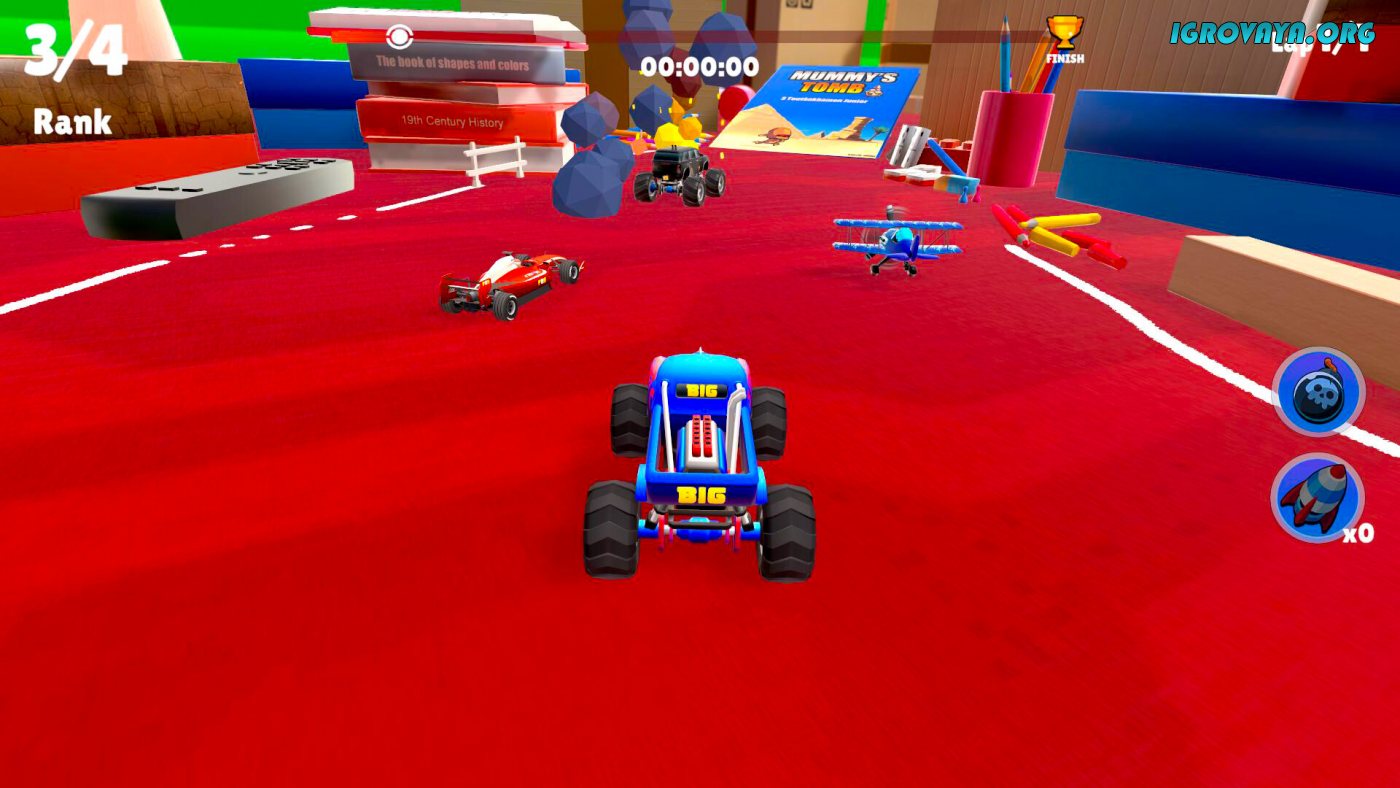 Toy Rider — это динамичные боевые гонки на радиоуправляемых машинках, где вы примите участие в захватывающих состязаниях. Пришло время продемонстрировать свое мастерство на практике и занять лидирующее место в соревнованиях. Путешествуйте по красочным локациям и наслаждайтесь процессом, ведь в вашем распоряжении помимо автомобилей окажутся самолеты и вертолеты, которые откроют дополнительные возможности.