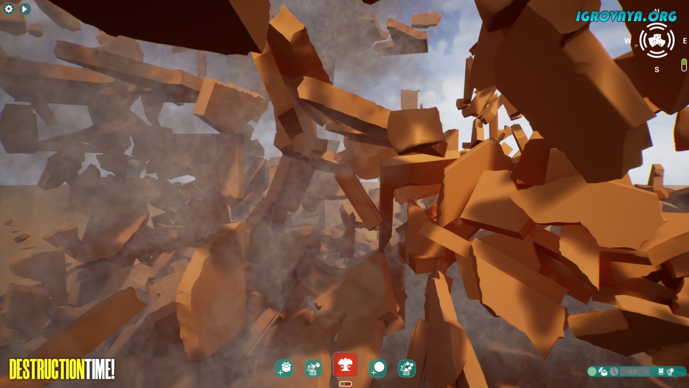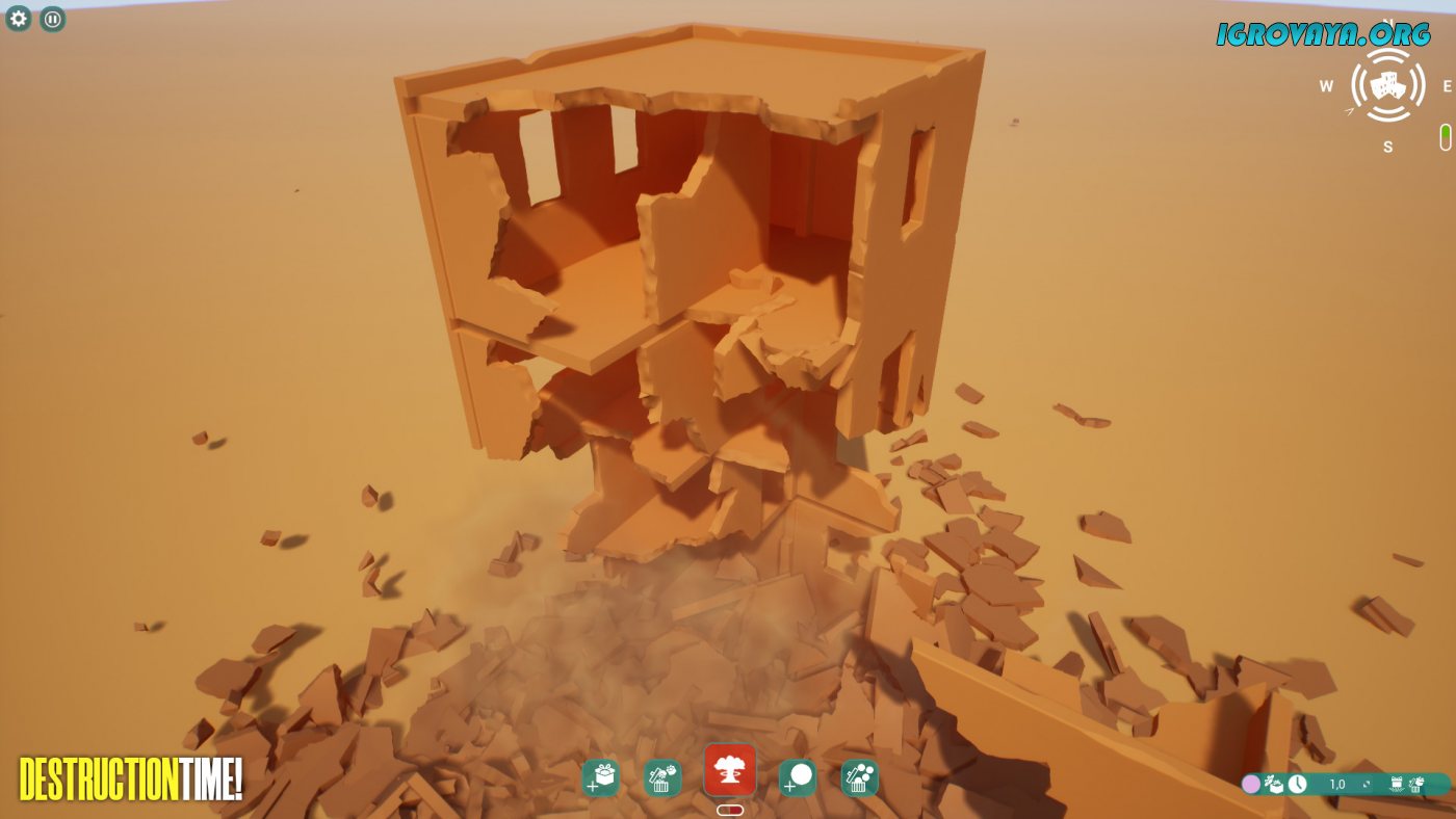 Destruction Time! — это основанный на реалистичной физике объектов симулятор, где вам предстоит экспериментировать с созданием и разрушением различных построек. Начните с реализации собственной идеи, выбирая блоки и стены для постройки, создавая дополнительные этажи и продумывая форму дальнейшего здания, а после найдите изощренный способ для его уничтожения. В вашем распоряжении окажется как классический динамит, так и средневековые катапульты и только вам решать от какого именно инструмента падет ваша постройка.