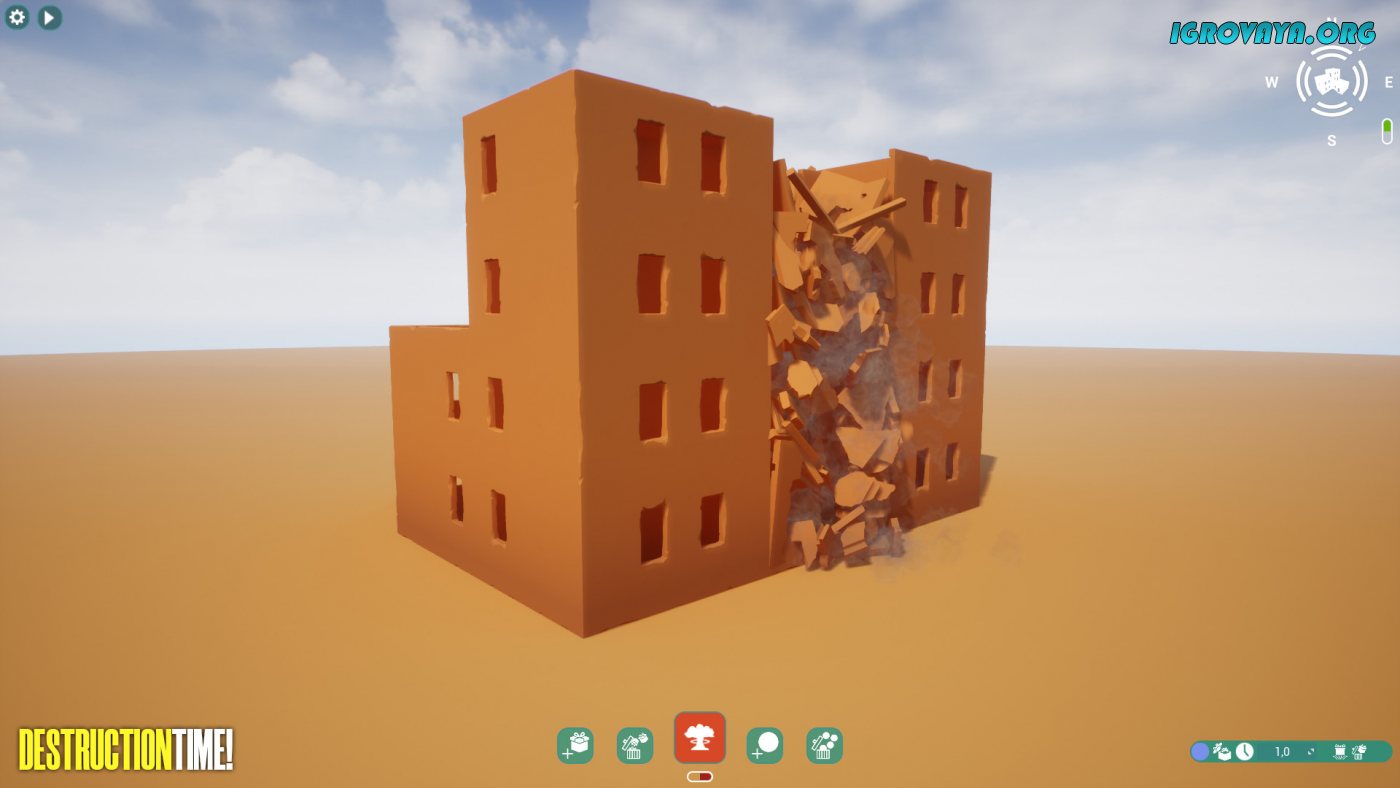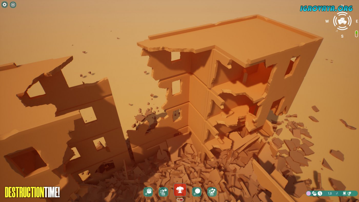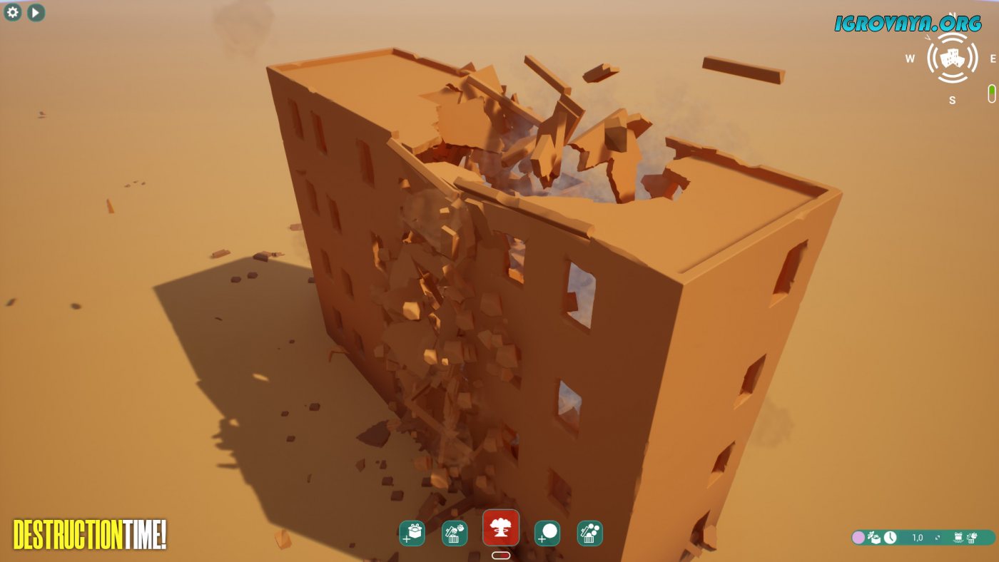 Используйте десятки блоков для строительства и столько же орудий для того, чтобы снести все до основания. Отличительной чертой стало то, что помимо одного взрыва, который поднимет в воздухе ваши многочасовые труды, вы запросто сможете сносить все по кусочкам, медитативно наслаждаясь оригинальным процессом. У нас вы можете скачать Destruction Time! торрент последнюю версию бесплатно на компьютер.