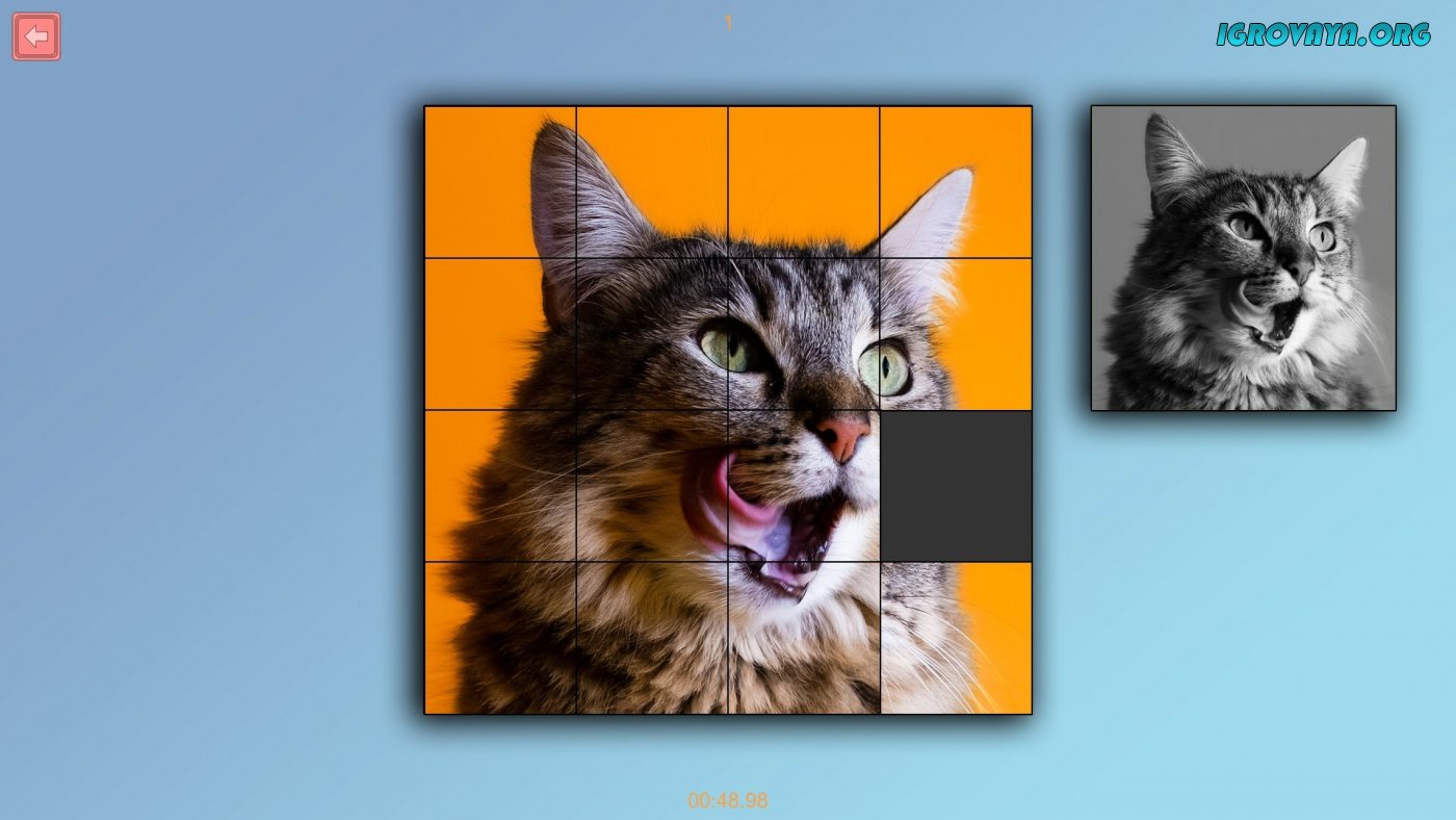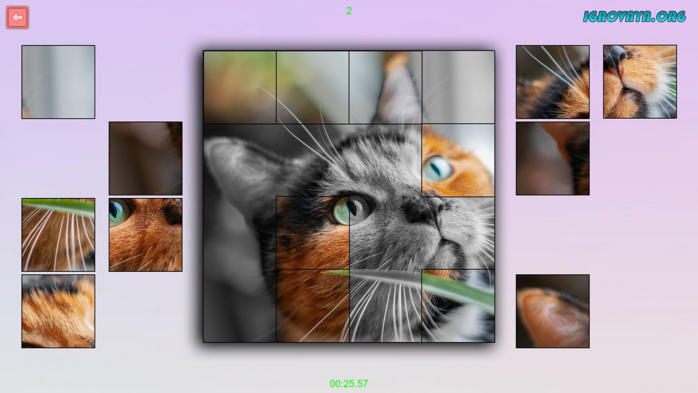 Вас ожидает 50 уникальных картинок и три уровня сложности на выбор. Последняя влияет на количество кусочков в головоломке и ее тип, а также наличие подсказок. Всего вас ожидает несколько типов задач: передвигать уже готовые частицы на самой рабочей области или собирайте их из отдельно взятых частей.