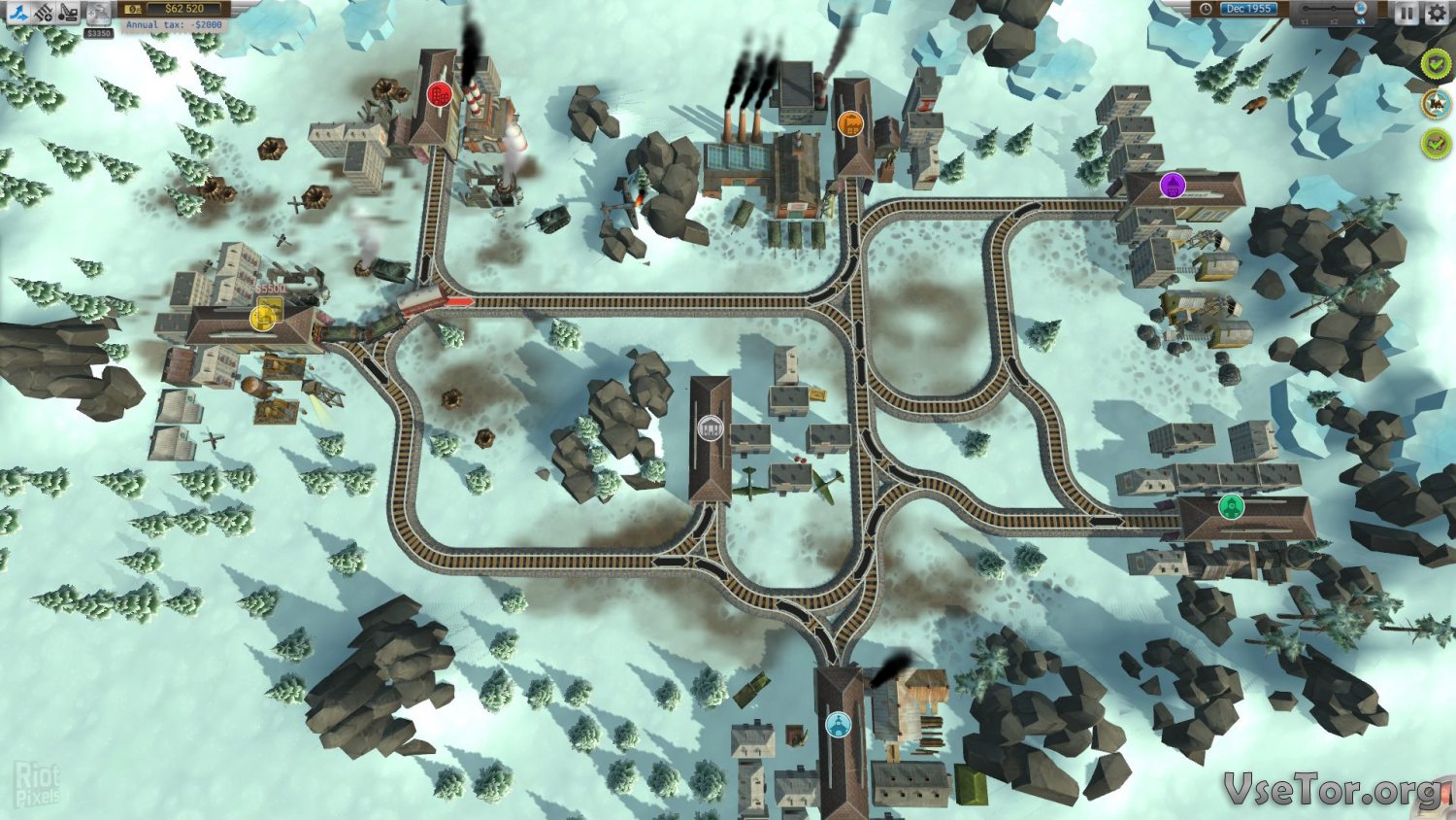 Суть игры заключается в следующем – вам дается локация, на которой расположены определенные ключевые объекты, которые нужно соединить между собой железной дорогой. Объекты могут иметь разное назначение и тип. Это может быть город, тюрьма, какой-нибудь завод или еще что-нибудь в этом роде. Но это и не важно. Важно то, что вам нужно их соединить таким образом, чтоб доставка тех или иных грузов была максимально удобной и выгодной.