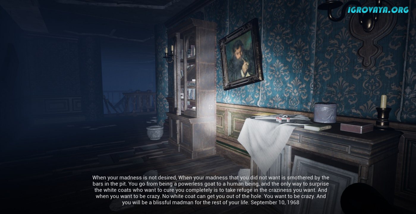 Psychiatric Hospital — это психологический хоррор от первого лица с запутанным сюжетом, который будет держать в напряжении до самого финала. На дворе 10 сентября 1968 года и это история одного человека, который очень хочет потерять разум в безумстве, чтобы навсегда забыть о своем прошлом. Отныне вам предстоит до конца своих дней провести за решеткой в психиатрической больнице, но вместе с этим узнать таинственную предысторию, которая оставила столь болезненные рубцы в истории вашей жизни.