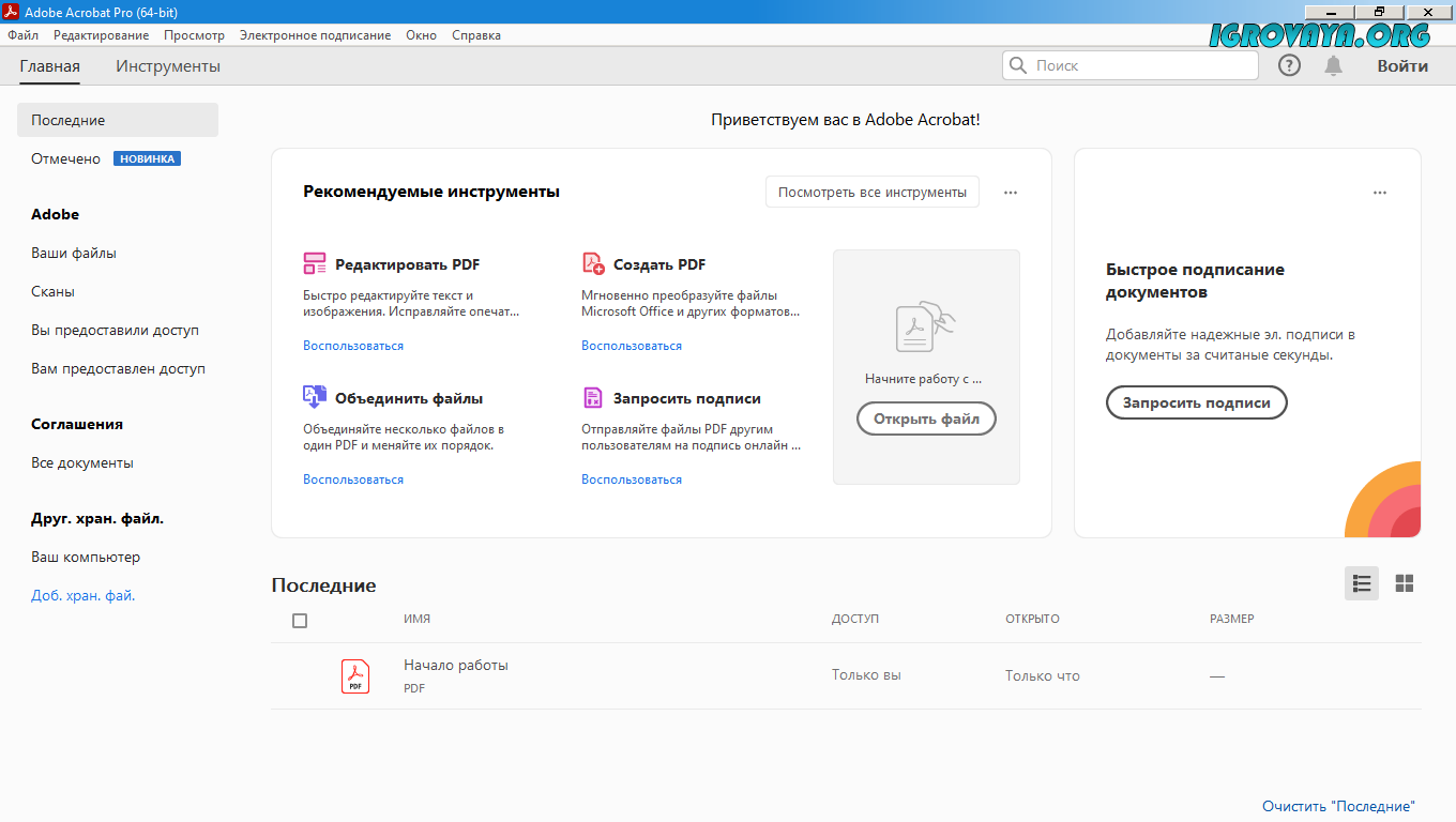 Adobe Acrobat Pro 2023 — это незаменимое приложение для работы с файлами в формате .pdf, которое позволяет не просто открывать и просматривать документы, но и редактировать их, а также структурировать для облегчения работы с ними в дальнейшем. Простой и понятный интерфейс не вызовет вопросов, а встроенное мини-обучение позволит в кратчайшие сроки освоить азы, если до этого вы никак не взаимодействовали с данным редактором.