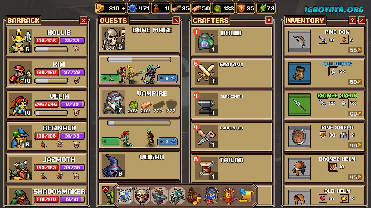 Формируйте отряды из нанятых героев и совершайте набеги на близлежащие области. Принимайте участие в тактических битвах с самыми разными противниками, а также не забывайте про существование смертоносных боссов. Прокачивайте уровень действующих лиц, а также улучшайте их характеристики, ведь в последующем противники будут становиться сильнее, а генерация случайных событий добавит динамики и запросто застанет вас врасплох. У нас вы можете скачать Royal Merchant торрент последнюю версию бесплатно на компьютер.