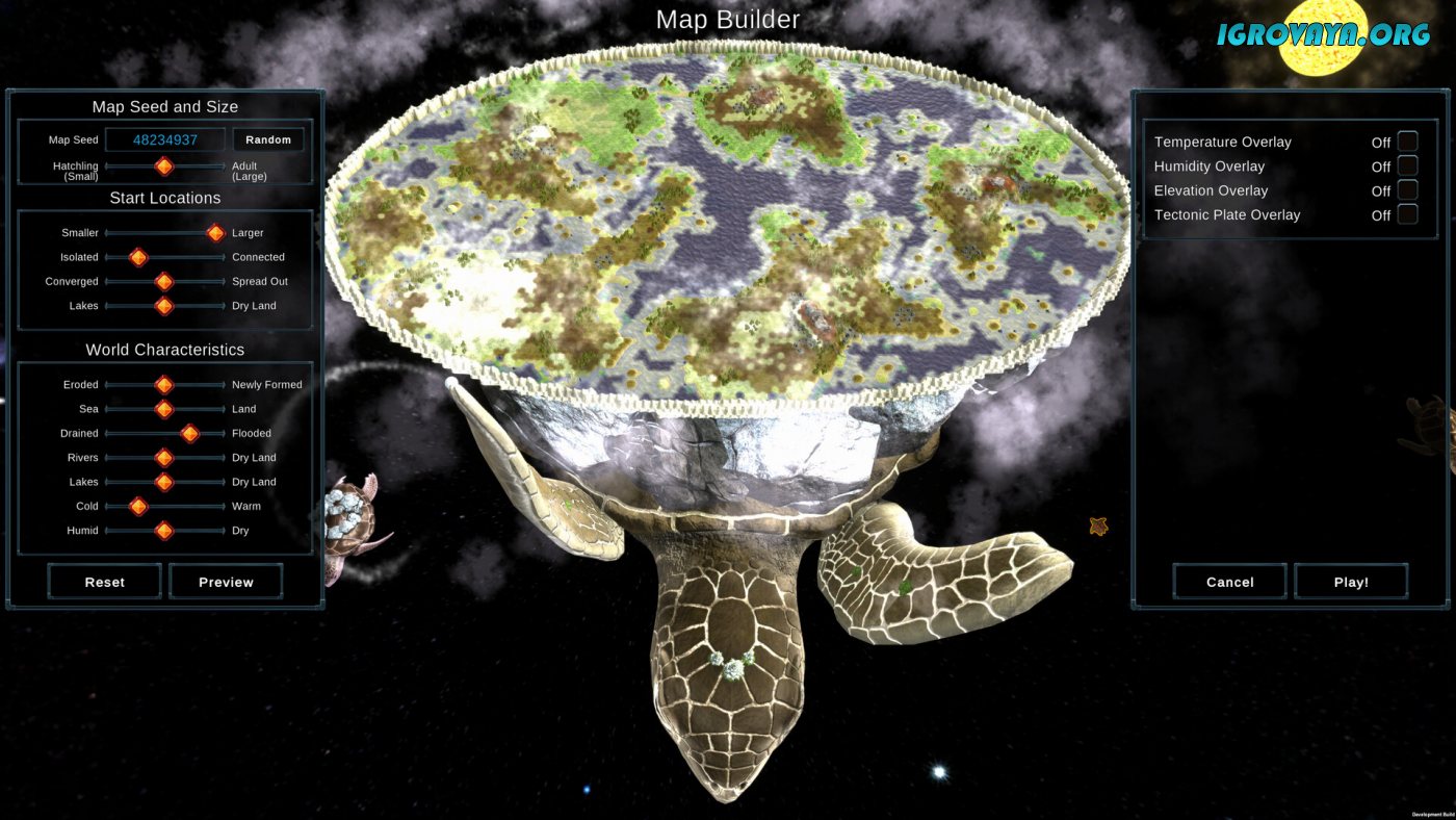 World Turtles — это градостроительный симулятор созданный разработчиком-одиночкой, которому удалось воплотить в жизнь грандиозную задумку с проработанной фэнтезийной вселенной. Среди бескрайних просторов Галактики летит Космическая черепаха на чьей спине поселилась колония дружелюбных племен, но однажды разгоревшийся между поселениями конфликт стал причиной войн. Отныне вам предстоит взять под свой контроль выбранную фракцию и привести ее к победе любой ценой, но помните, что каждое действие отразится на дальнейшей судьбе Черепахи.