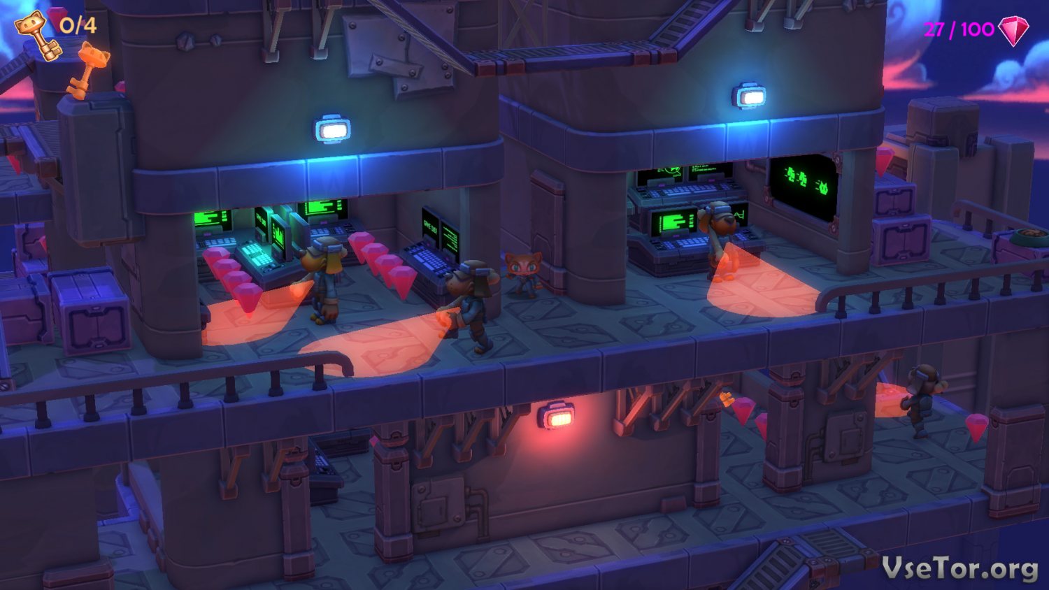 Самое же интересное заключается в том, что в Cat Burglar A Tail of Purrsuit вас не будут заставлять стрелять, убивать и крошить противников. Ваша главная задача в этой игре, это сбор драгоценностей, специальных камней на уровнях. Казалось бы, ничего сложного – бегай себе да ищи различные драгоценности и сокровища, собирай их и направляйся к выходу после их сбора. Но на самом деле все то сделать не так уж и просто, ведь, во-первых, вас будут преследовать, а во-вторых, сами уровни здесь выполнены в лабиринтной стилистике.