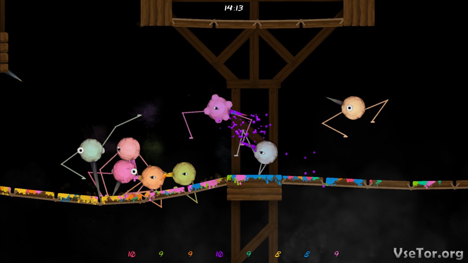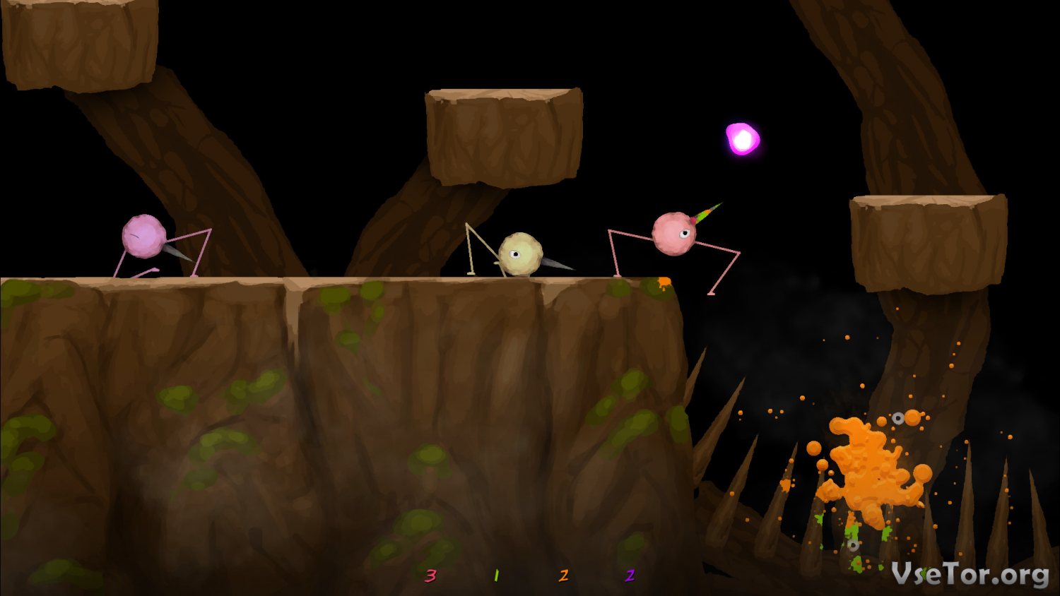По сути, это многопользовательская арена, на которой игрокам предлагается драться друг против друга до тех пор, пока не останется кто-то один, или пока не закончится время уровня. Играть же вы будете за паукообразных существ с длинными и очень острыми клювами. Суть проста – вам нужно вонзить клюв в противника и продержать его достаточно времени в противнике, пока того не разорвет на части. Хотя на самом деле в STAB STAB STAB! Это не единственный способ одолеть врага.