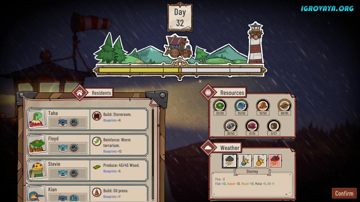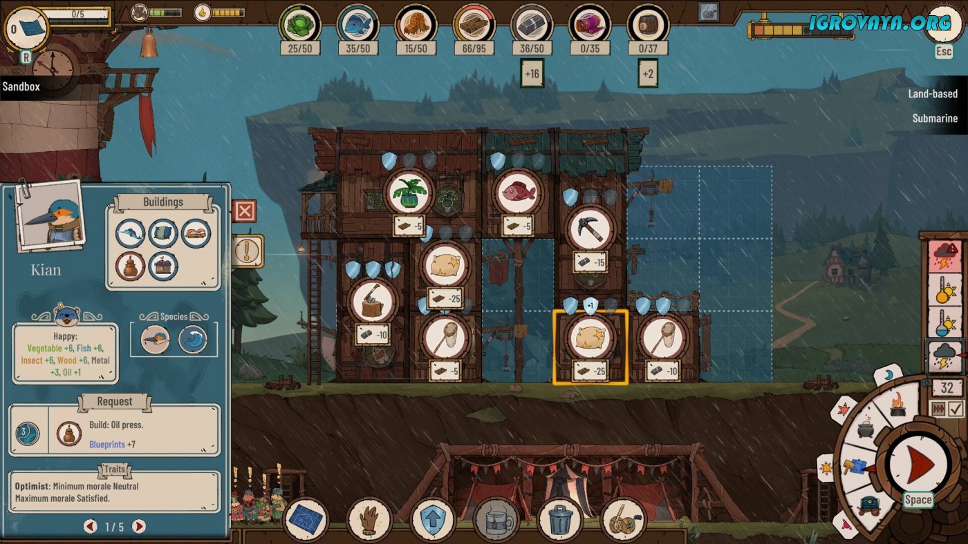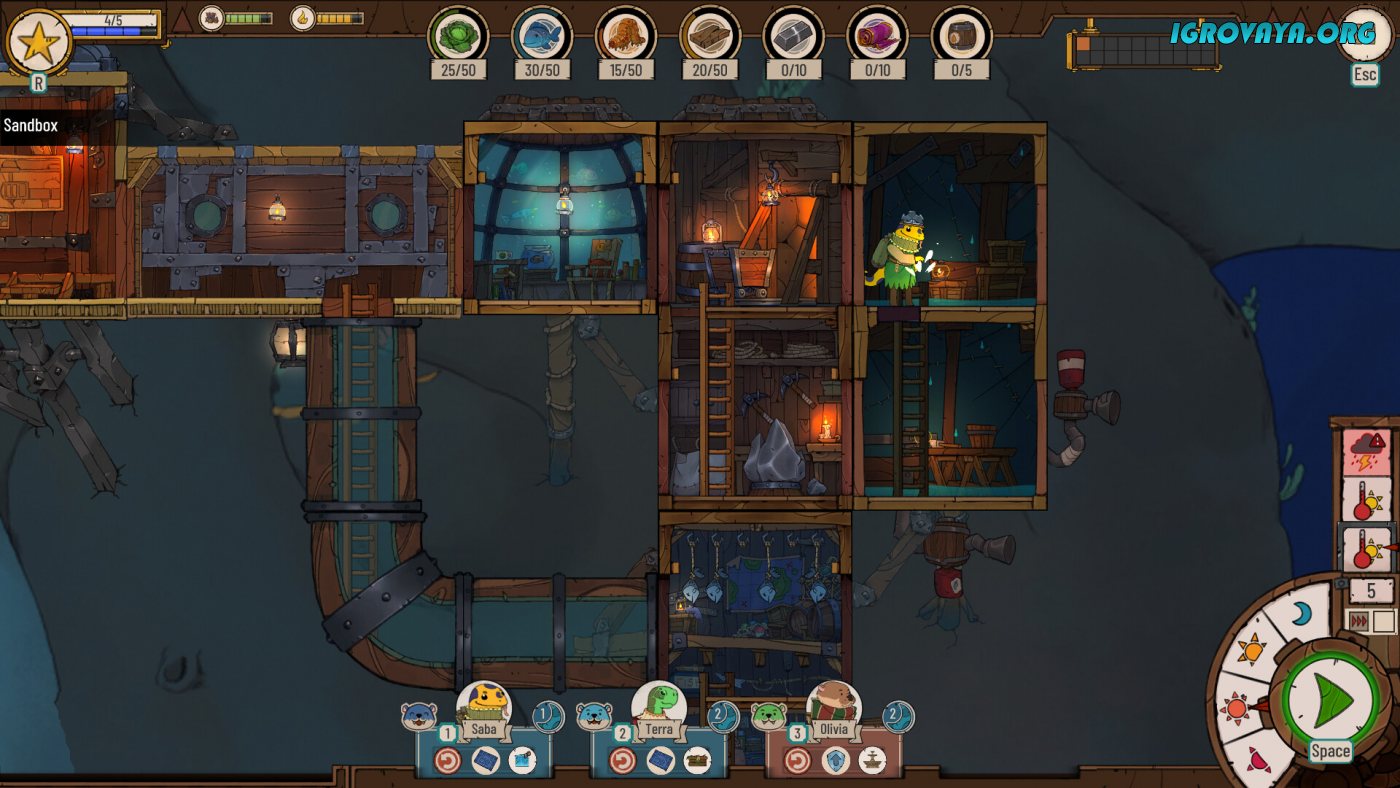 Ресурсы станут ключевым решением для всего, ведь от их количества зависит будущее всей колонии. Ищите способ пополнить запасы материалов и провизии, иначе рискуете потерять некоторых жителей, ведь именно они являются двигателем всего прогресса. Внимательно следите за состоянием выживших и удовлетворяйте их потребности, ведь только так вы добьетесь максимальной отдачи в работе. Постоянно модернизируйте и укрепляйте маяк, увеличивайте количество комнат и не забывай, что помимо жилых помещений потребуются и мастерские для создания полезных инструментов и механизмов. У нас вы можете скачать Diluvian Winds торрент последнюю версию бесплатно на компьютер.